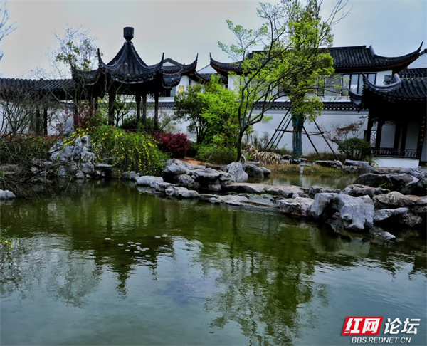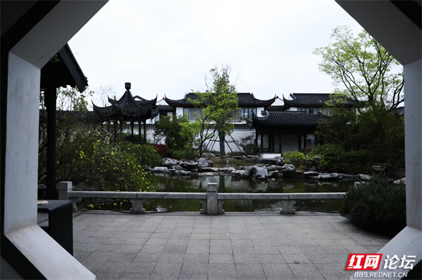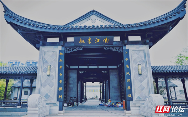 一次偶然的机会,我路过衡阳县的西渡镇。离县城没多远,衡西快线的路边就有一个非常显眼的牌子——“桃李江南”。一栋栋古香古色的精致建筑引人注目,整个布局仿若江南水乡的画卷。于是我停下车,走进了这富有特色的园区。刚一进去,一股清新的气息如同轻纱般扑面而来,瞬间将我包裹其中。脚下的石板路像一条灵动的蛇,蜿蜒曲折地向深处延伸,仿佛在引领我探寻一个神秘的世界。我不由自主地顺着石板路前行,每走一步,都感觉离喧嚣的尘世更远了一些。