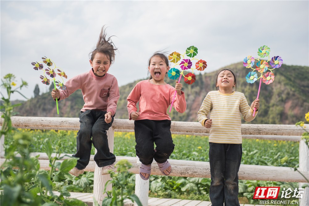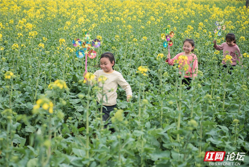 三个小朋友,像三个小天使,从田埂上跑来了,进入了我的镜头,装扮着油菜花,装扮着春天。