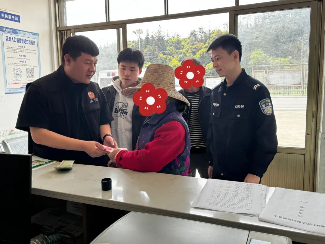 考虑到周某年岁已高,又没有智能手机,无法将微信转账的钱取出,执行干警立即前往银行,将兑现的案款兑换成现金,于次日送钱上门。至此,从立案到结案仅五天时间,该案便顺利执结。