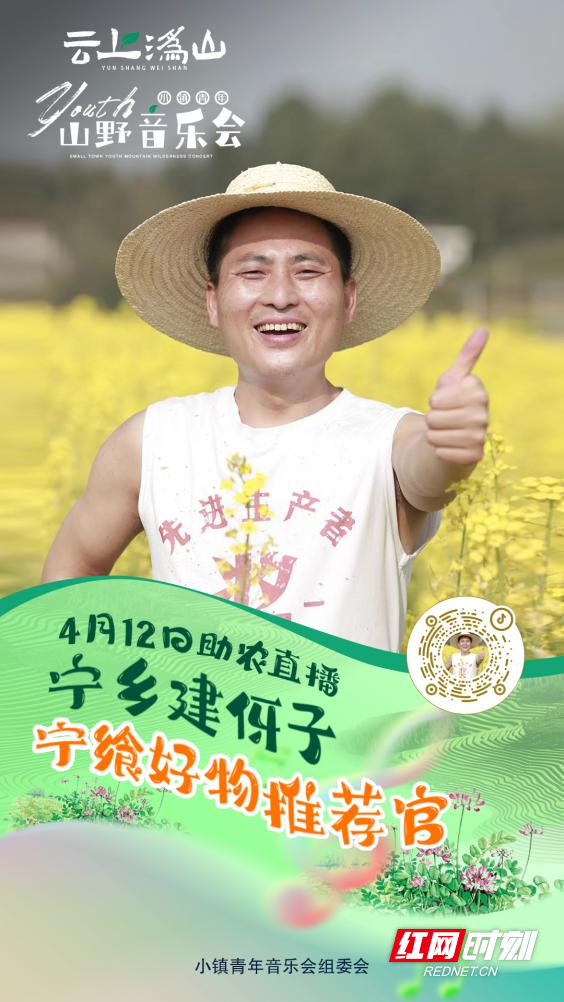 “云上沩山”小镇青年山野音乐会,“建伢子”作为“宁飨好物推荐官”,在现场开启直播,免费为乡亲们卖货。
