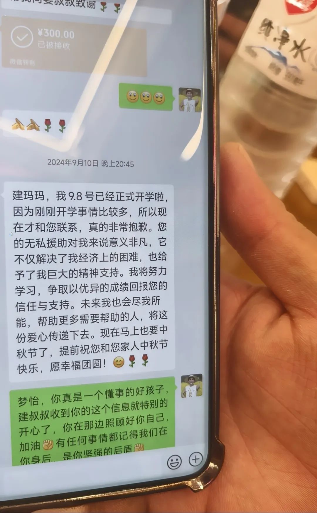 受助孩子给他发信息:“建叔叔,我考了全班第一!”“建叔叔,我考上了中南大学!”他举着手机和大家分享喜悦,比自家闺女得奖还高兴。