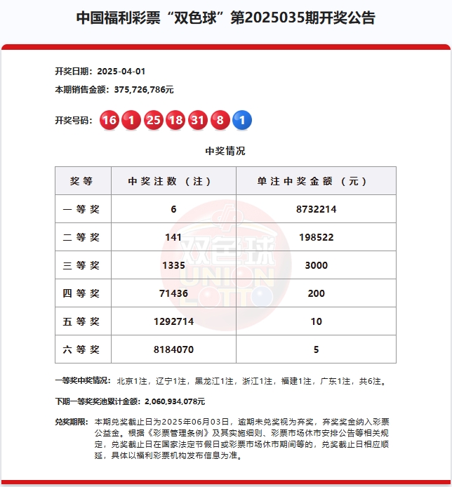 2025年4月1日中国福利彩票开奖信息