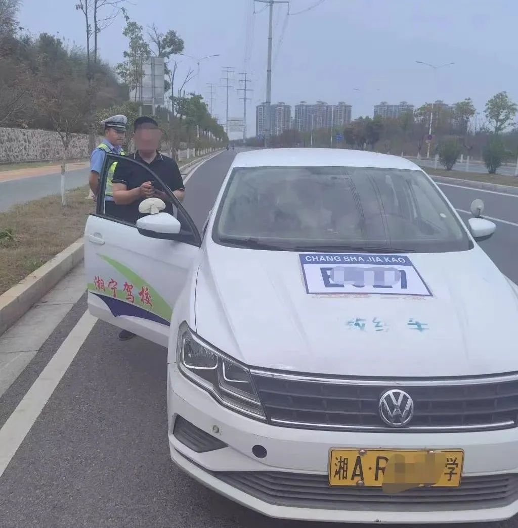 2025年03月26日12时51分,一辆牌照为湘AR8**学的教练车在宁乡市仁福大道的白马大道至金龙路路段缓慢行驶,被宁乡市交警大队机动中队民警拦下检查。经查,某驾校教练员王某军(男,58岁)存在不按指定路线上道路学习驾驶的违法行为,民警将相关情况通报给所在驾校,并依法对王某军处以罚款200元处罚。