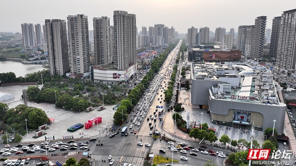 从90米的空中俯瞰,益阳大道中段如一条流光溢彩的缎带,在城央舒展开来。“城市之光”建筑群恢宏矗立,玻璃幕墙映照着天光云影,宛如现代都市的璀璨钻冕。四周街道纵横交错,车流如细密的血脉奔涌不息;高低错落的楼宇间,绿意盎然的公园与蓝顶居民区点缀其间,织就一幅动静相宜的城市画卷。远处,蜿蜒的资水泛着粼粼波光,与林立的高楼共同勾勒出益阳朝气蓬勃的天际线——无人机镜头下的这一刻,既凝聚了城市的繁华律动,又流淌着独属于这座城市的诗意。(图文/红网论坛@益阳老宁者)