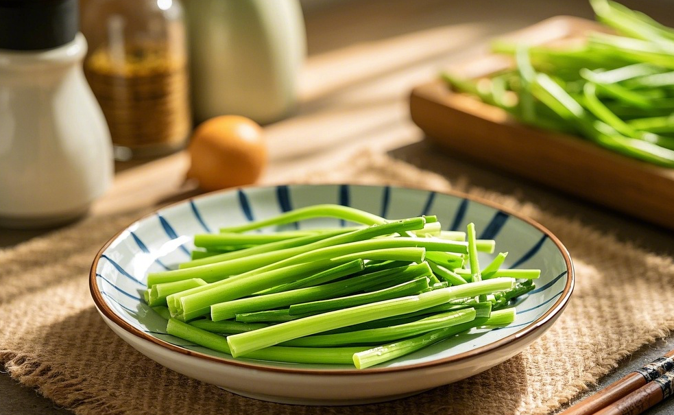 【制作】将蒌蒿洗净焯水,捞出过凉水后挤干水分,切成段放入碗中;再加入蒜末、生抽、醋、香油、辣椒油等调料,搅拌均匀即可。