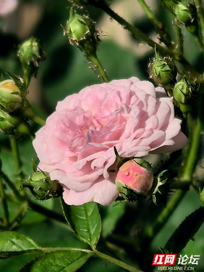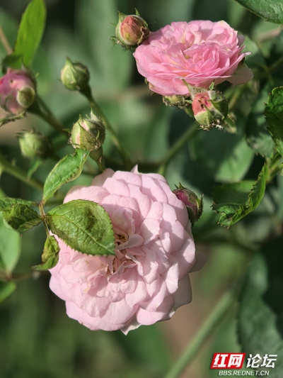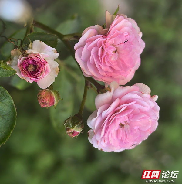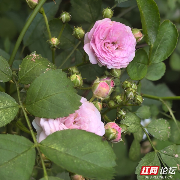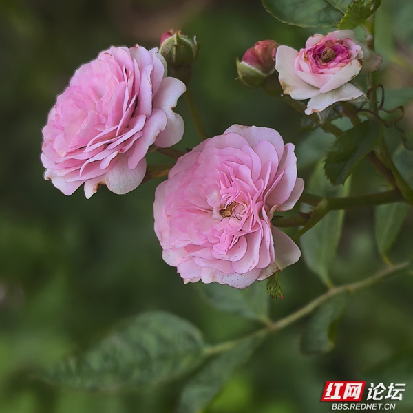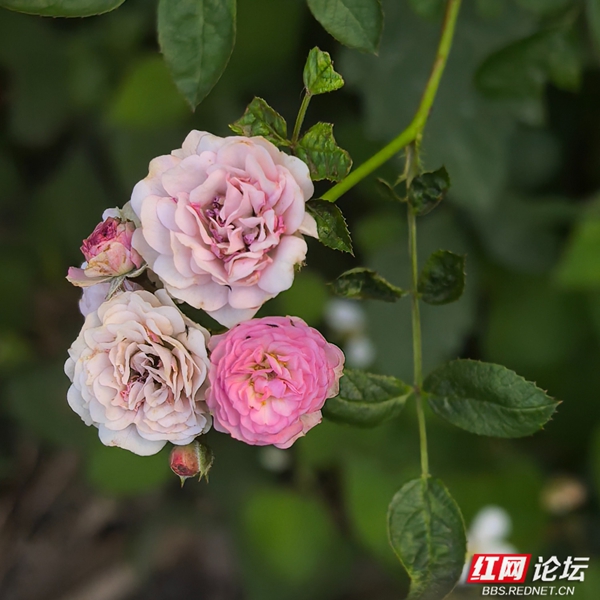 初夏的风掠过安乡南区,一簇簇七姊妹花攀援盛放,在绿叶掩映间绽开层层叠叠的粉红烟霞。其花型娇小玲珑,重瓣如绢,七八朵拥簇成团,似少女们挽手低语,故得名“七姊妹”。远望如瀑布倾泻的锦绣,近观则见花瓣由深粉渐次晕染至浅白,花心微露金黄蕊丝,沾染晨露时更显晶莹剔透。