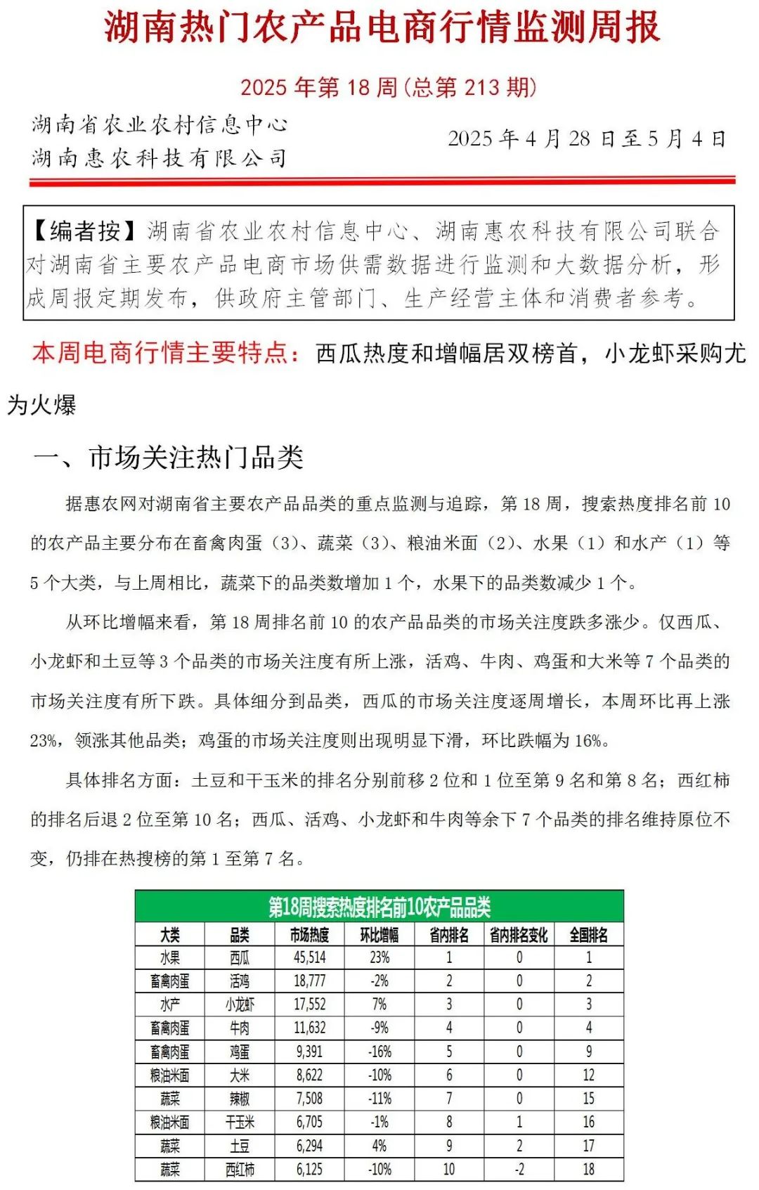 湖南热门农产品电商行情监测周报(2025年第18期)