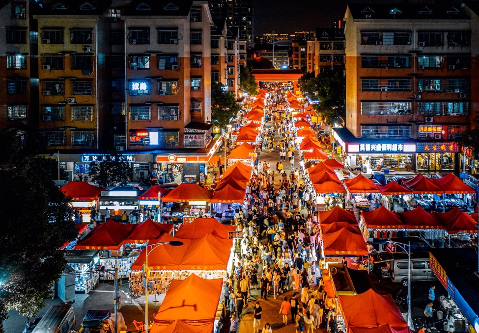 怀旧感十足的“东瓜山夜市”位于长沙市天心区裕南街街道的海拔高点,这里没有基建狂魔,也没有鳞次栉比的高楼,白沙路和书院路穿城而过,形成了江边大厦几十层、山上民居数百间这种极具包容性的城市景观。