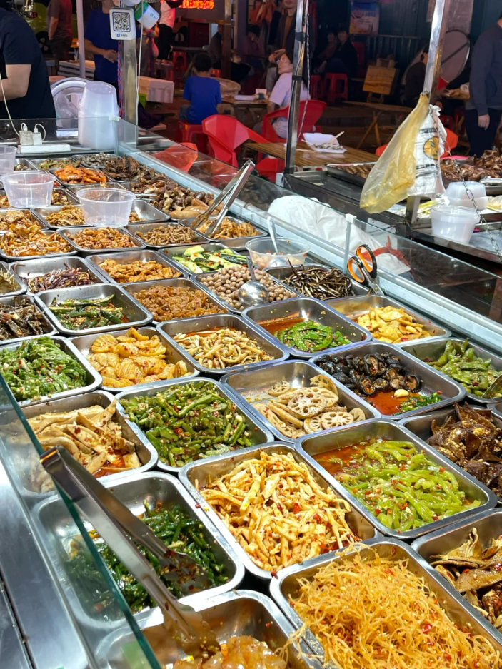 这一幕幕热闹非凡的夜市景象,宛如抚慰人心的温暖灯火,缓缓铺展开长沙的夜生活画卷。扬帆夜市作为长沙夜生活的一处缩影,这里汇聚了众多小吃摊位,香气四溢,让人垂涎欲滴。