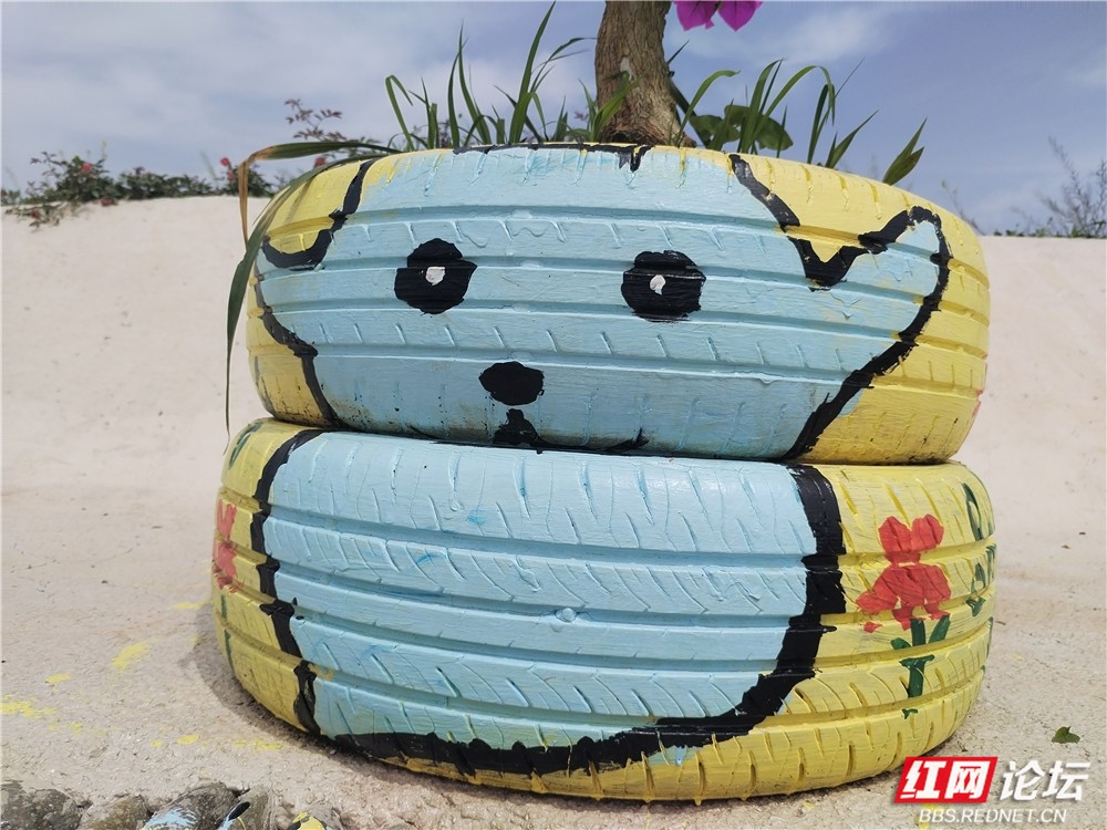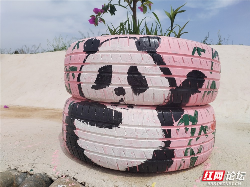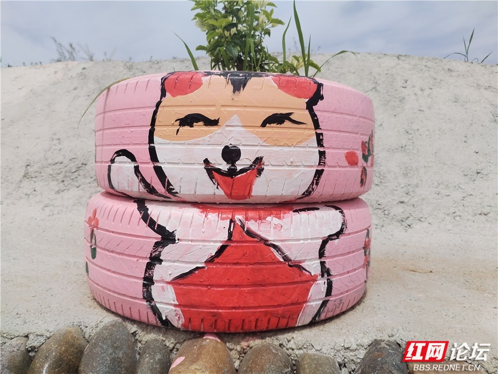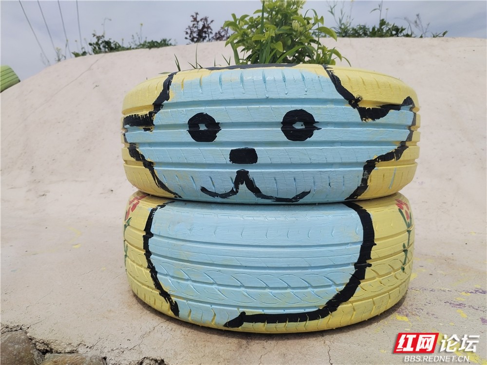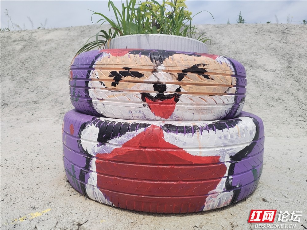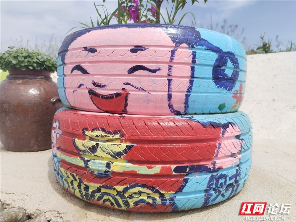 桥弦村里有几幅墙画,画得还真是不错。尤其是在旧轮胎上做画,这个有创新,我喜欢。