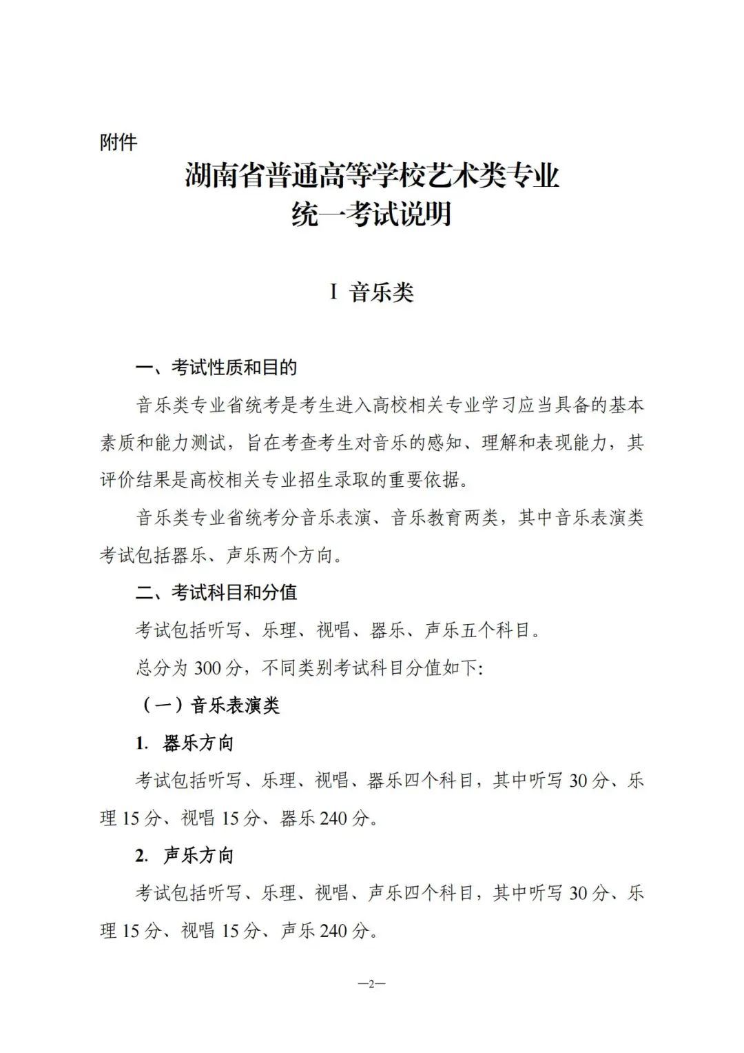 附件:湖南省普通高等学校艺术类专业统一考试说明