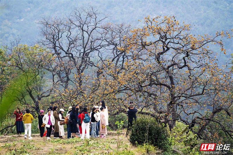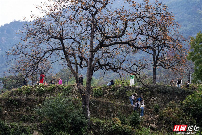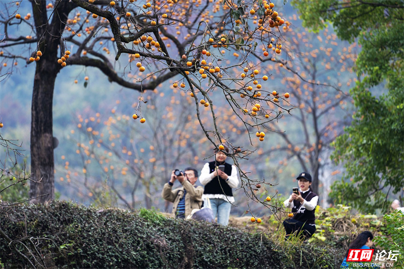 市集里,村民将新鲜甜柿、山乡特产铺陈开来,烟火气与果香在风里交织;游客们或穿梭于柿林间定格美景,或在墙绘前探寻农耕文化的踪迹,让古村落的每一寸肌理都溢满“柿”情画意。