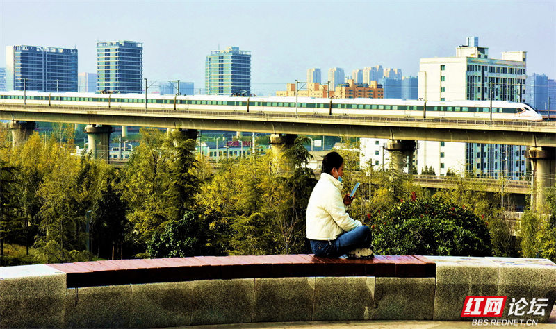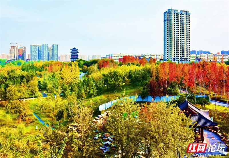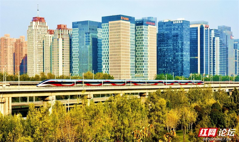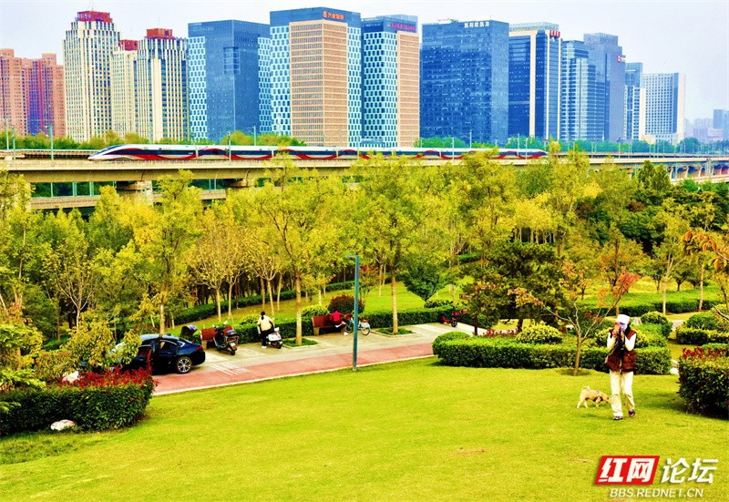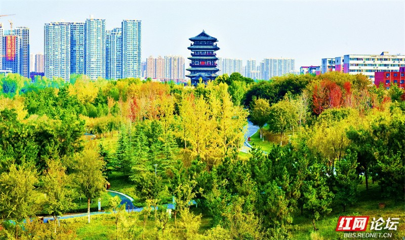 为了用镜头记录这醉人的秋色,早饭过后,我便背上摄影包,骑上电动车,按预先选好的路线前往郑州高铁公园。站在公园的高岗上极目远眺,五彩斑斓的秋叶将这里装点得如同一幅流动的画卷。远处高高的铁路桥上,一列列火车缓缓驶向东站,列车与园中秋景相映成趣,勾勒出秋日独有的风景线。