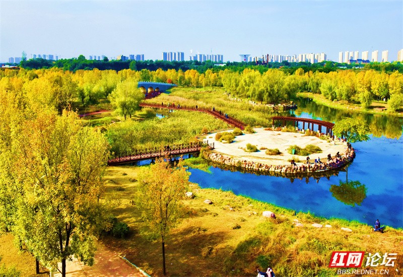 离开西流湖,转道贾鲁河。河岸两旁金黄的林荫大道,让人仿佛穿行于画中。河床边的圆形小广场上,一群垂钓者静坐岸边,静待鱼儿上钩。昔日的“臭水沟”,如今已成为人们休闲垂钓的好去处。芦苇随风摇曳,芦花如银线般晶莹剔透。观景走廊上,游客们纷纷举起手机,摆出姿势,记录这美好瞬间。(图文/红网论坛@吴贤德)
