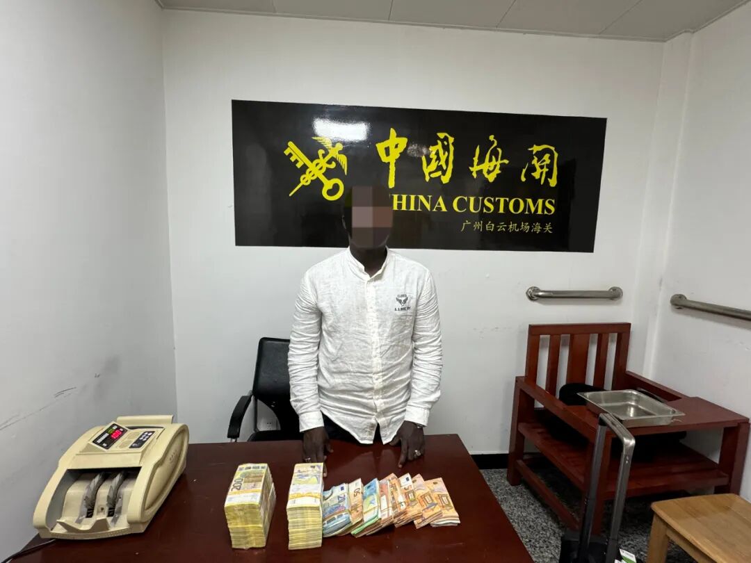 近日,广州海关在广州白云机场口岸旅检渠道查获1名旅客违规超量携带货币进境,现场查获未向海关申报的43.59万欧元,折合人民币超360万元。