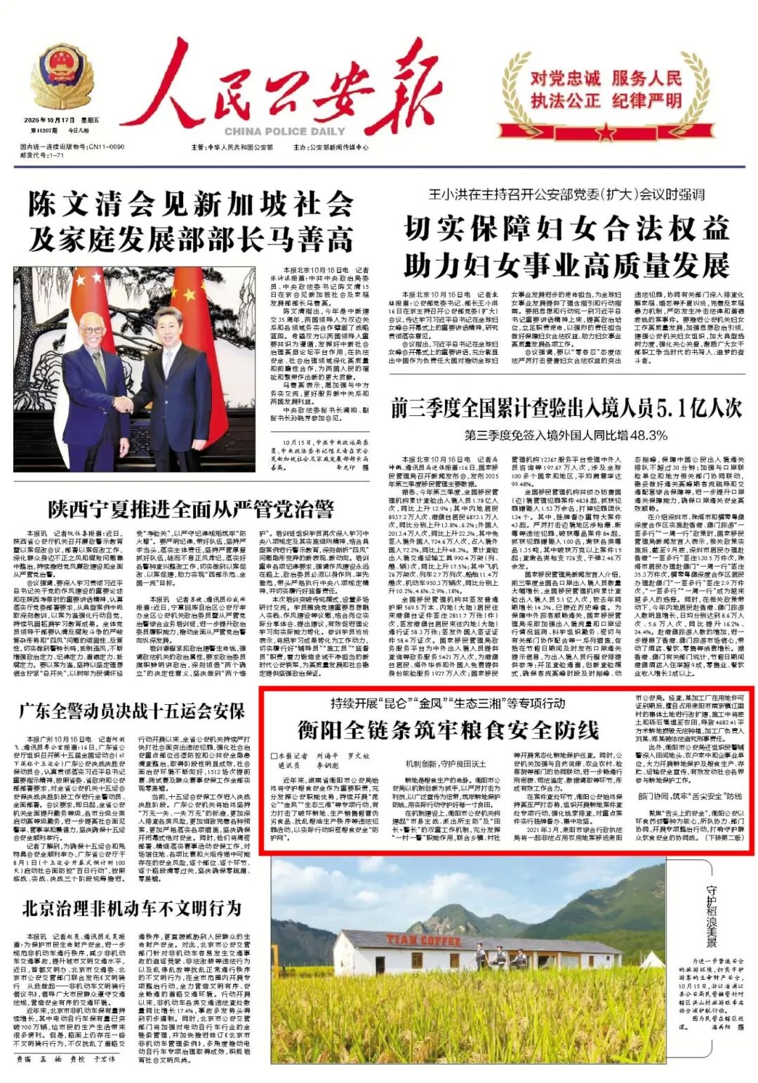近年来,湖南省衡阳市公安局始终将守护粮食安全作为重要职责,充分发挥公安职能优势,持续开展“昆仑”“金风”“生态三湘”等专项行动,有力打击了破坏耕地、生产销售假冒伪劣食品、扰乱粮油生产秩序等违法犯罪活动,以实际行动织密粮食安全“防护网”。