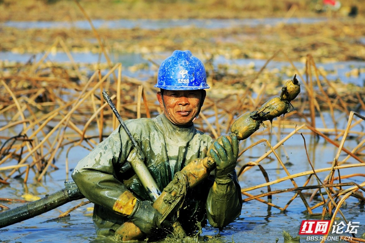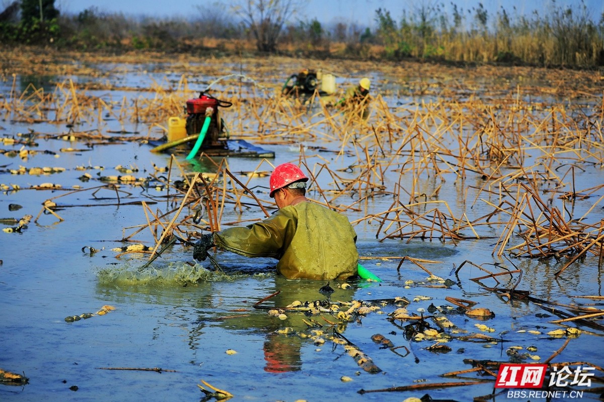 冬阳和煦,暖意融融,岳阳屈原农场的藕塘间,一幅热气腾腾的丰收图景正徐徐铺展。