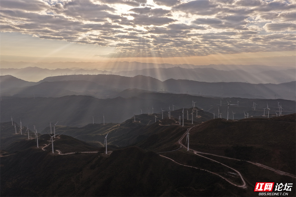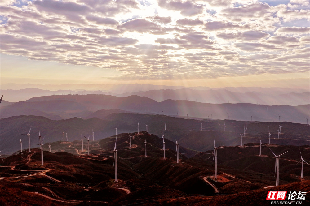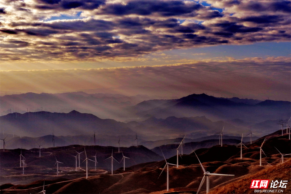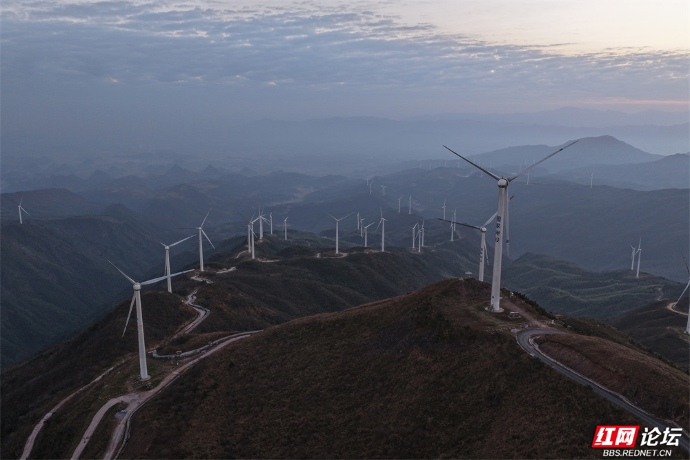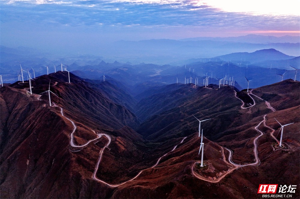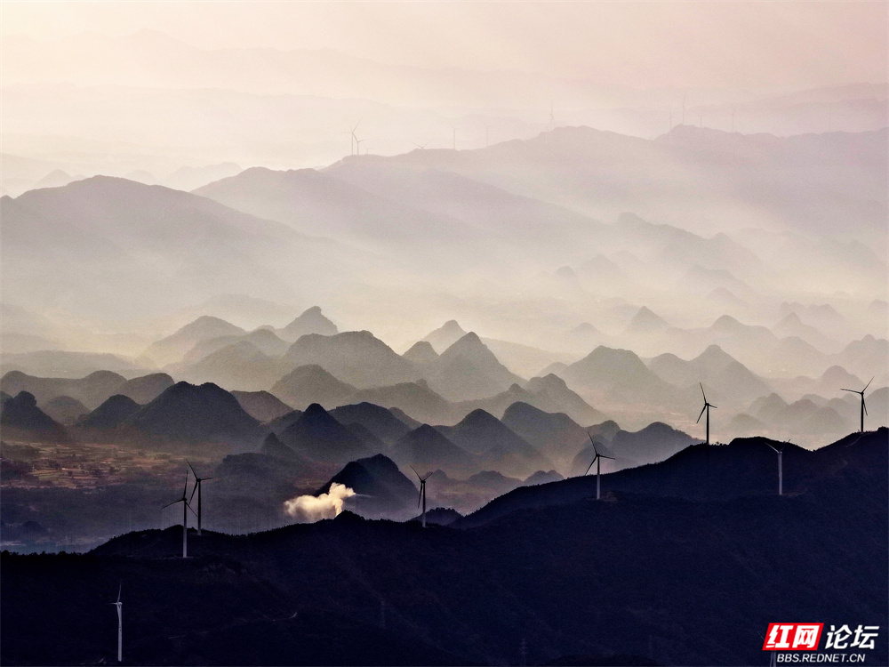 当桂林兴安摩天岭的晨雾还没揉开,风车群已在山峦轮廓里站成了诗。
