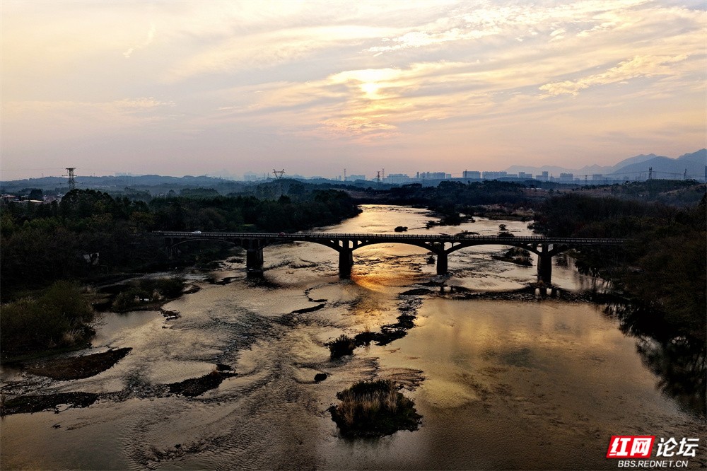 桂林市灵川县渡头村的桥静静卧在光影之间,对岸的树与屋化成一抹剪影。偶尔有人撑筏而过,船桨划开一江绚烂,也划开了天与水的界限。风很轻,时间很慢,只剩山守着水,水映着天,万物沉浸在一种澄澈的宁静里。这里的傍晚,美得像一个不必醒来的梦。(图文/杨勇)