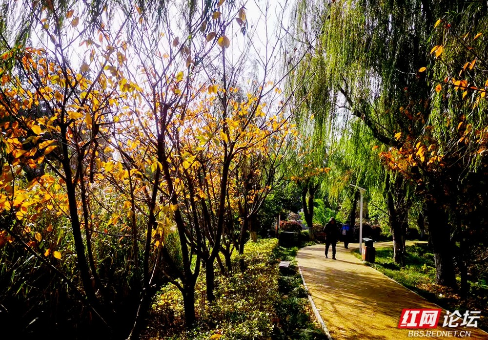 落叶为伴,闲步三湖晚晴中。(图源:蒋新建)