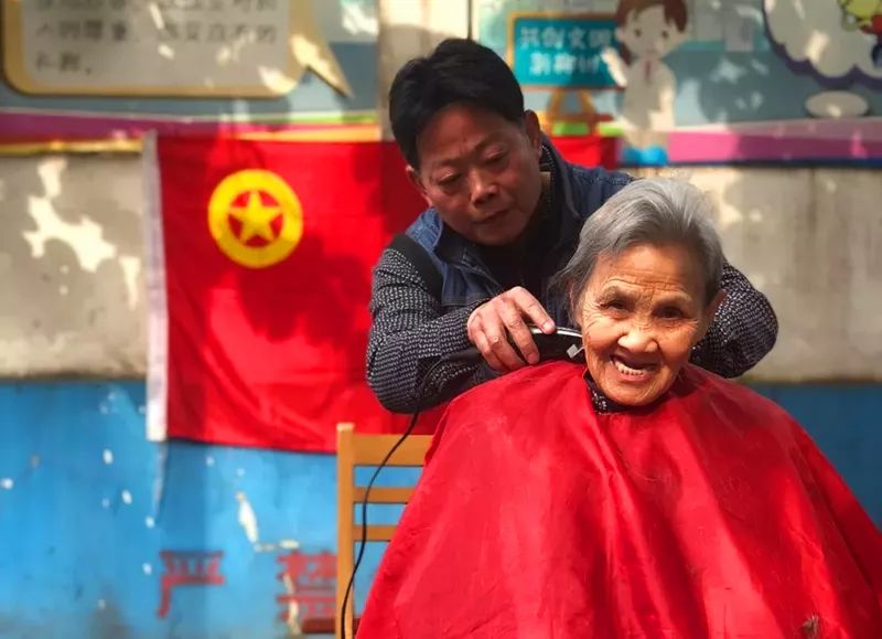 住在附近的赵红菊老人,一大早就听见了热闹的声响,“年纪大了爱热闹,我就下来让他们给我剪剪头发,还是免费的。”88岁高龄的她自退休以来,几乎每年都会到“雷锋街市”上转转。