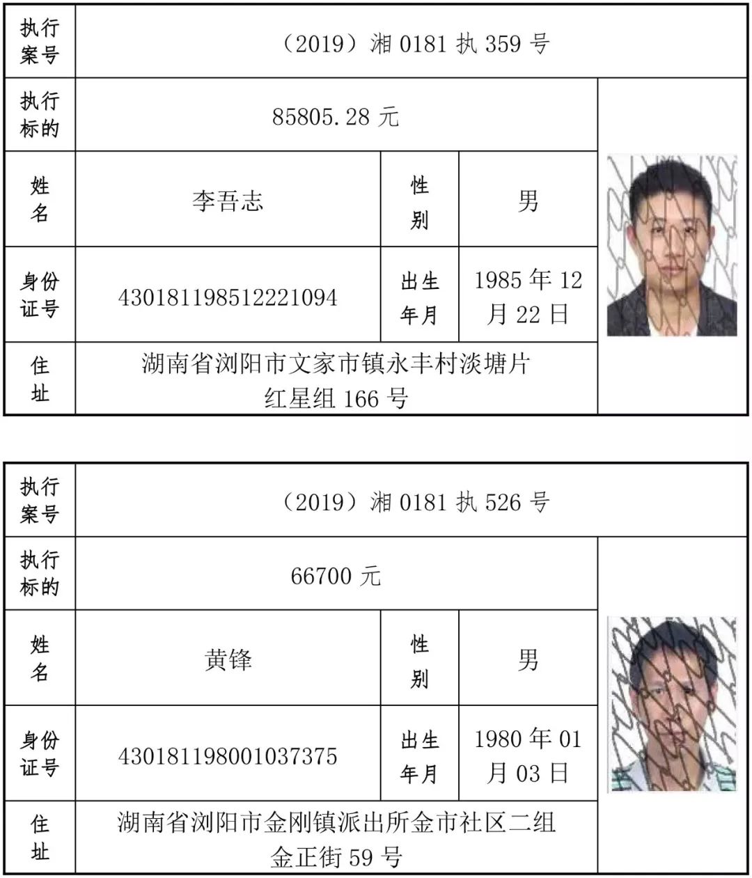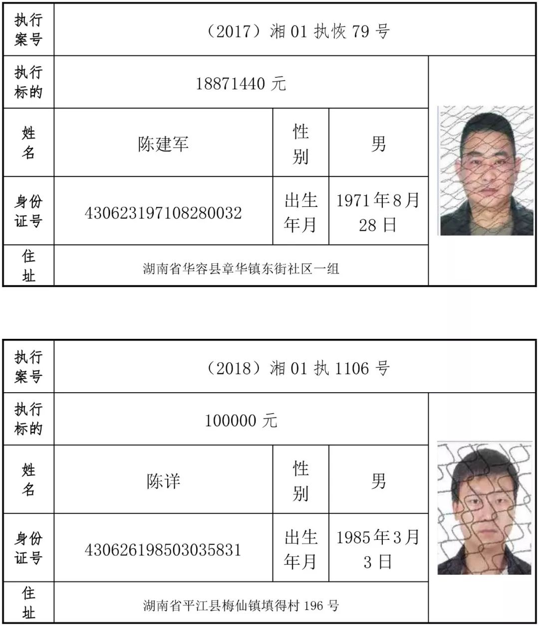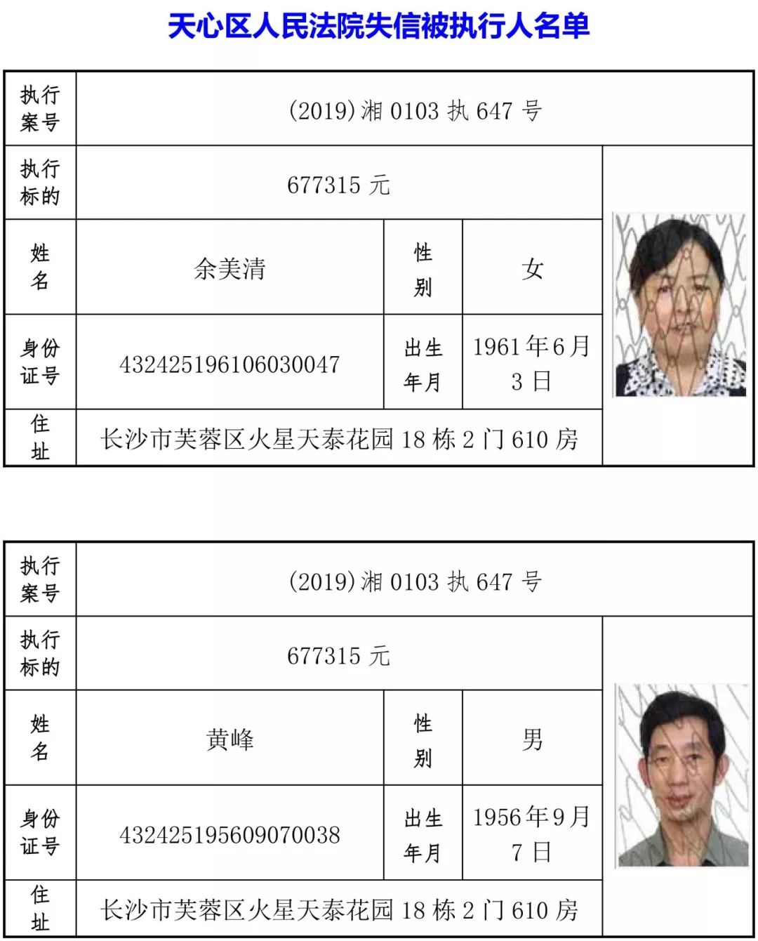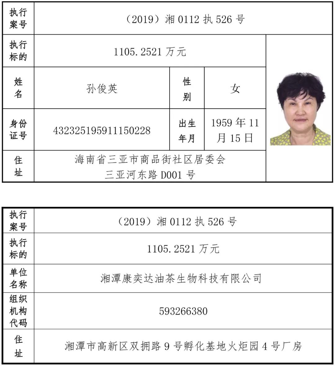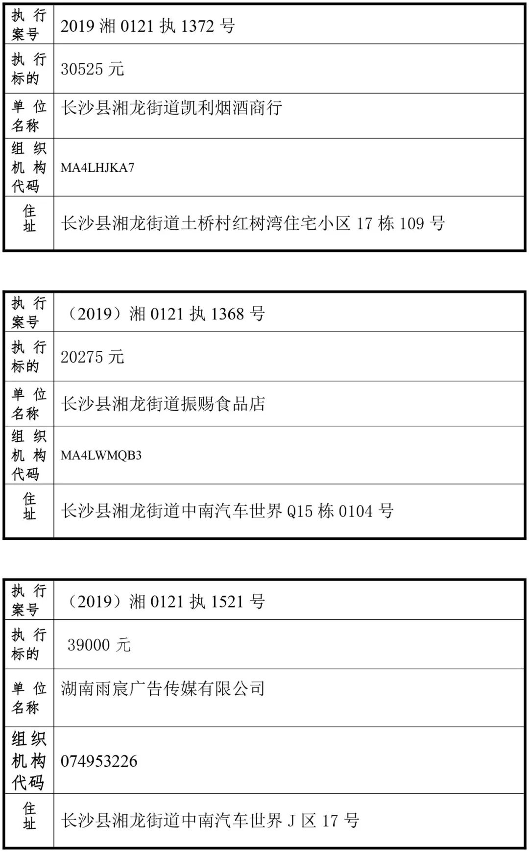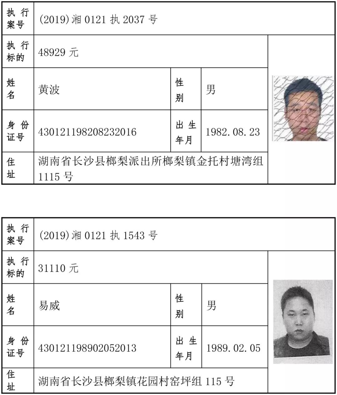 为有效促进被执行人自觉履行生效法律文书确定的义务,维护司法权威,提高司法公信力,让人民群众在每一个司法案件中感受到公平正义,营造向上、向善、诚信互助的社会风尚,促进社会综合治理,加快推进社会信用体系建设,我院根据《最高人民法院关于公布失信被执行人名单信息的若干规定》及《长沙市关于加快推进失信被执行人信用监督、威慑和惩戒联动机制建设的实施意见》,结合长沙市两级法院具体实际,2019年将适时集中统一发布全市两级法院失信被执行人名单信息并予以信用惩戒。现将2019年第一期失信被执行人名单信息予以公布。同时,根据《最高人民法院关于限制被执行人高消费的若干规定》第一条第二款的规定,向该批失信被执行人发布限制高消费令。