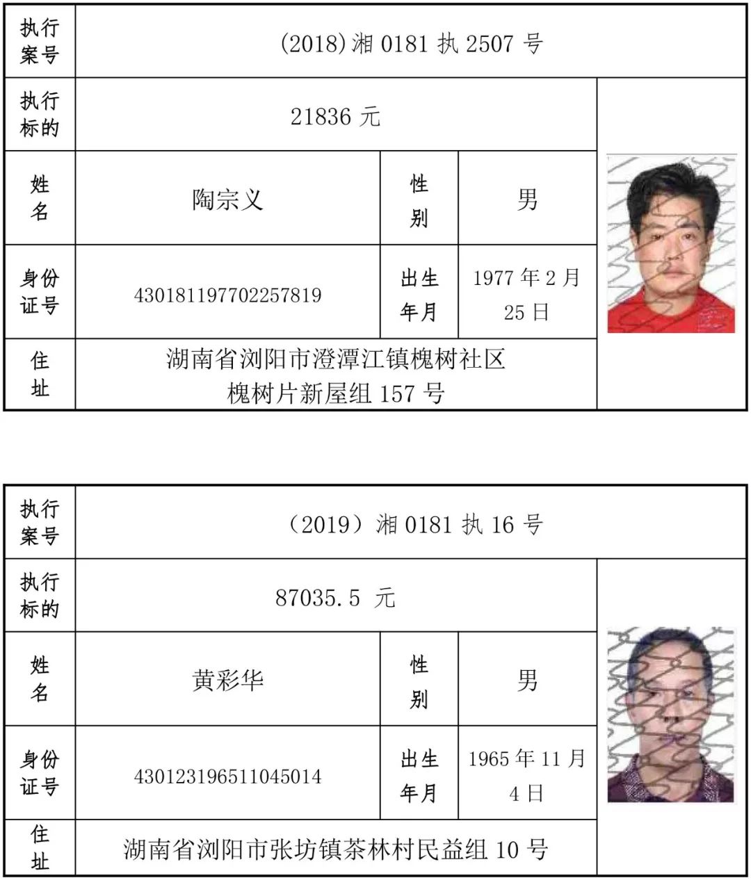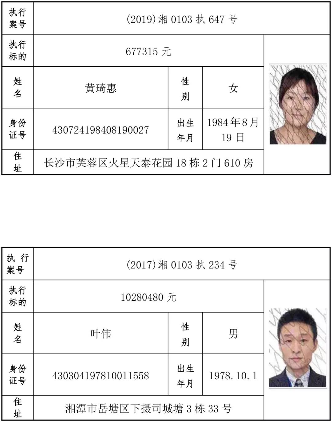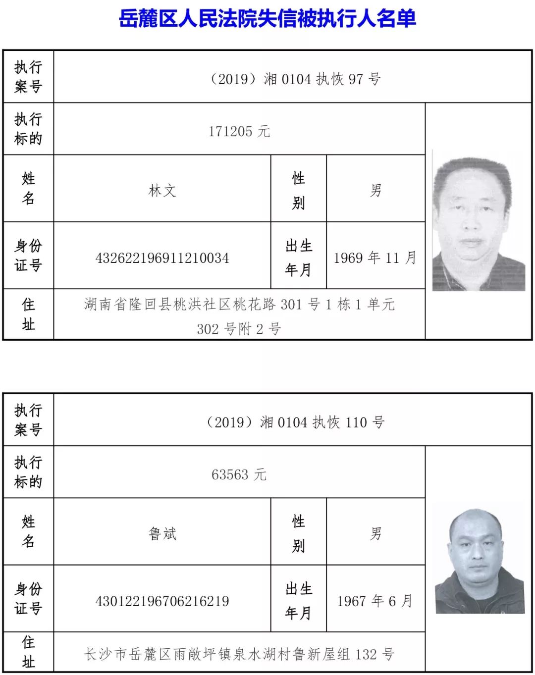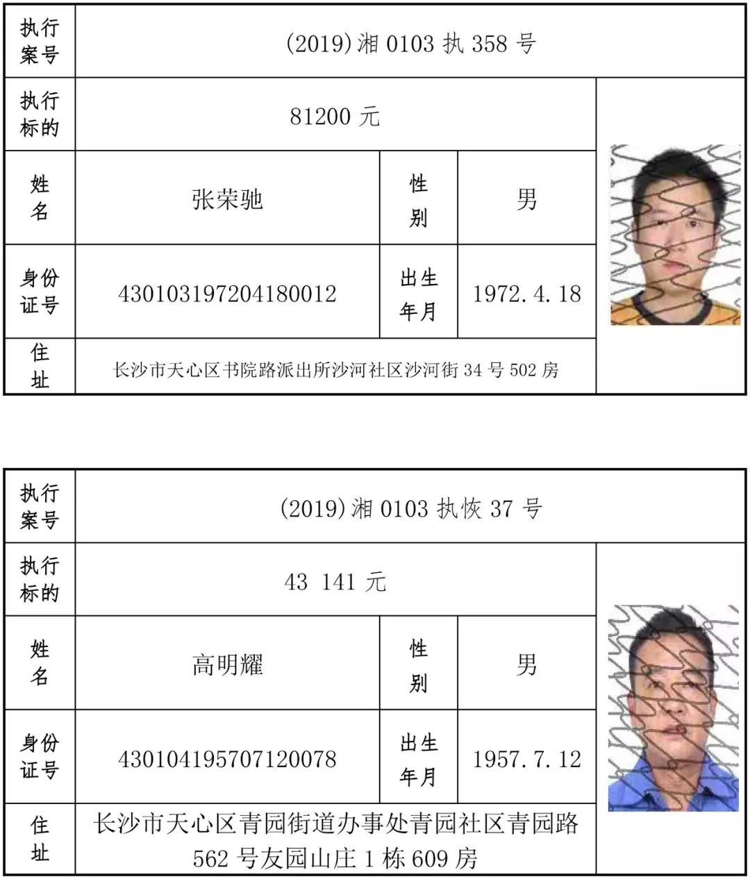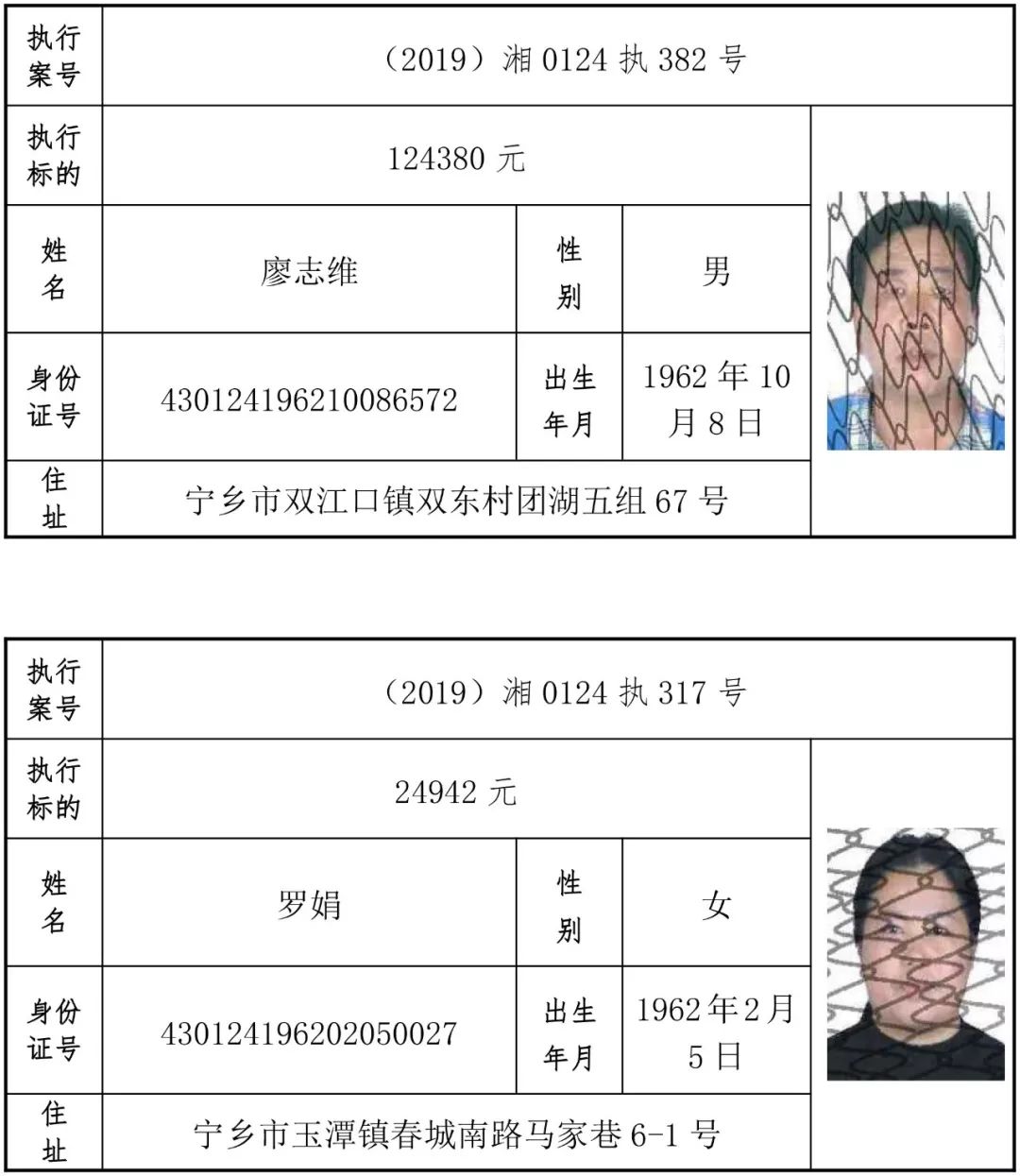 为有效促进被执行人自觉履行生效法律文书确定的义务,维护司法权威,提高司法公信力,让人民群众在每一个司法案件中感受到公平正义,营造向上、向善、诚信互助的社会风尚,促进社会综合治理,加快推进社会信用体系建设,我院根据《最高人民法院关于公布失信被执行人名单信息的若干规定》及《长沙市关于加快推进失信被执行人信用监督、威慑和惩戒联动机制建设的实施意见》,结合长沙市两级法院具体实际,2019年将适时集中统一发布全市两级法院失信被执行人名单信息并予以信用惩戒。现将2019年第一期失信被执行人名单信息予以公布。同时,根据《最高人民法院关于限制被执行人高消费的若干规定》第一条第二款的规定,向该批失信被执行人发布限制高消费令。