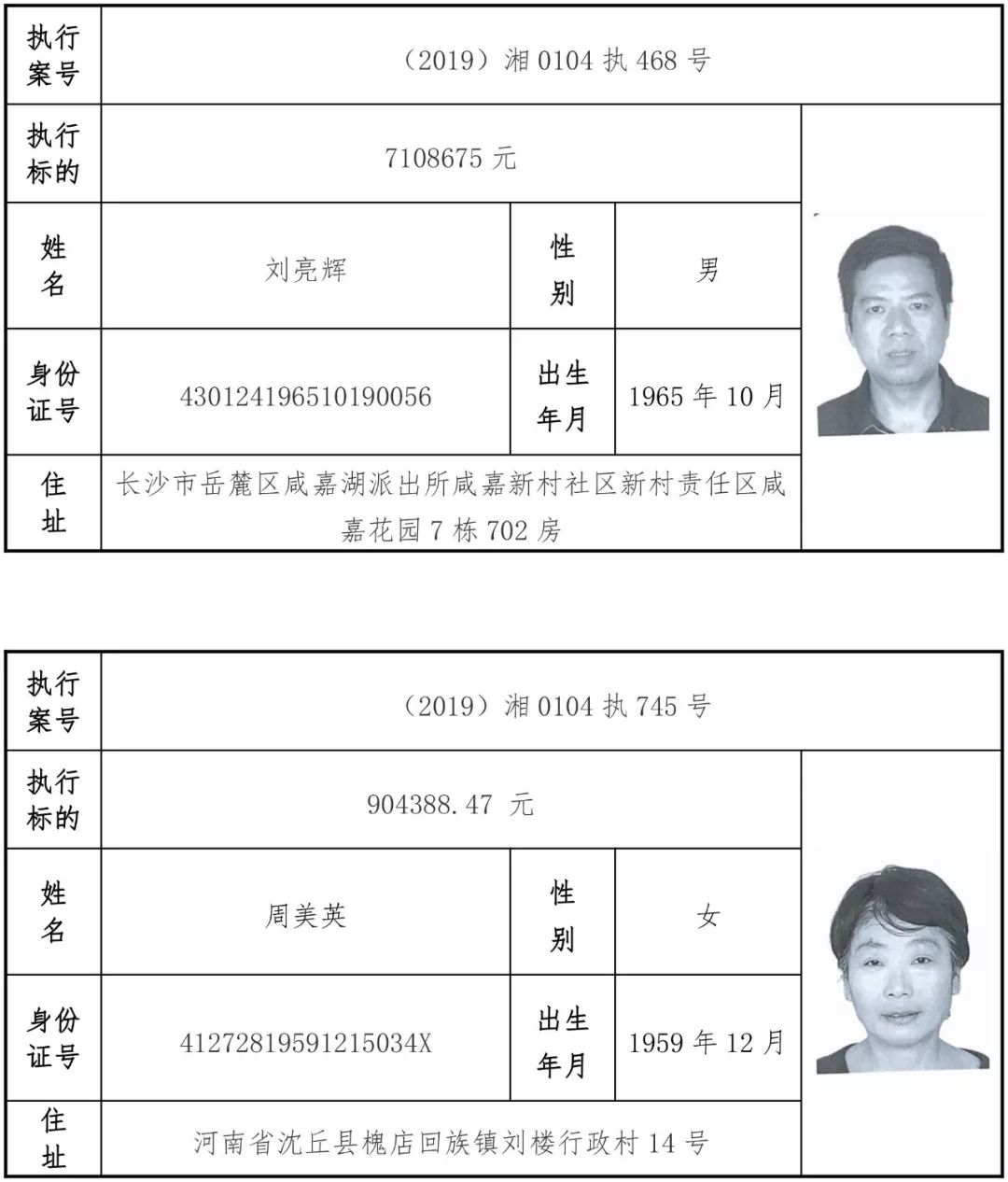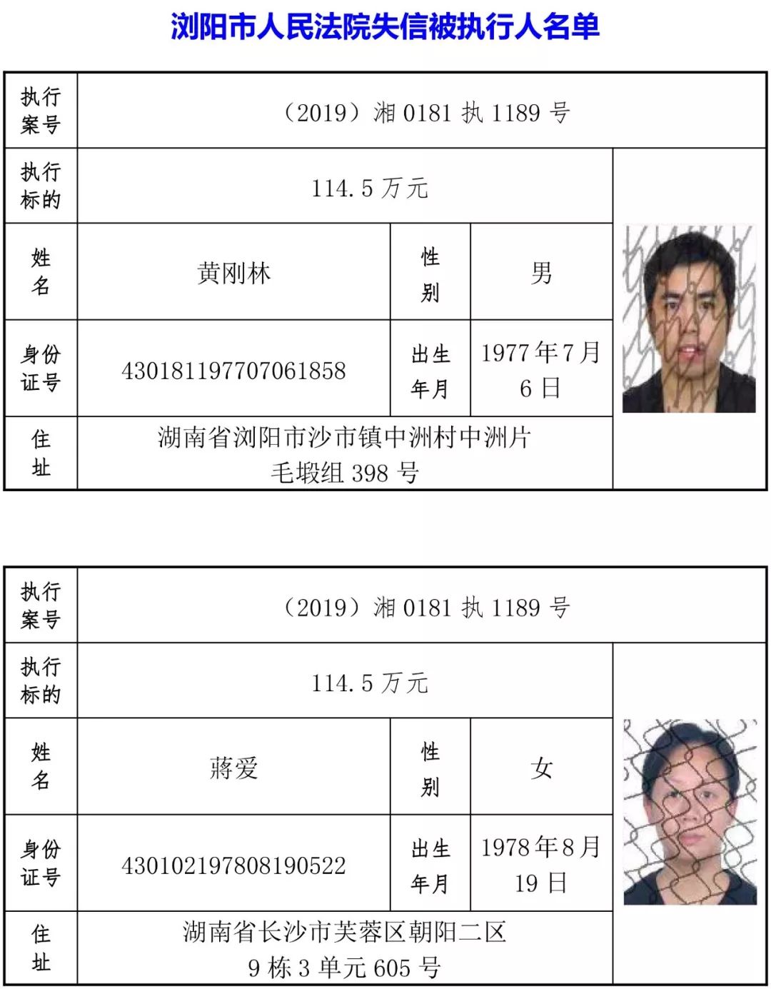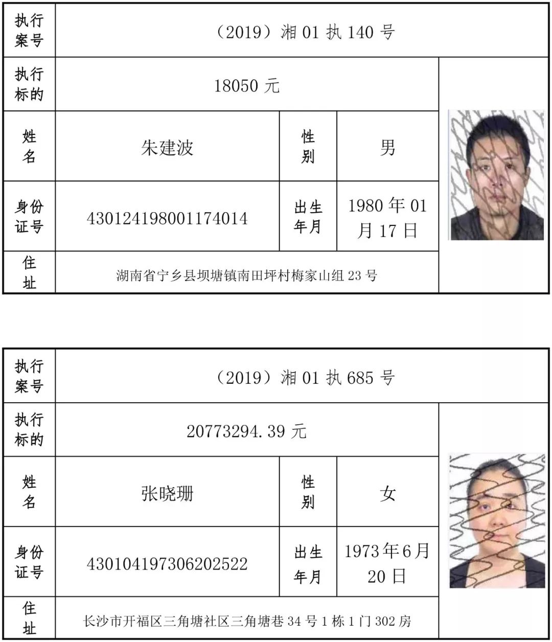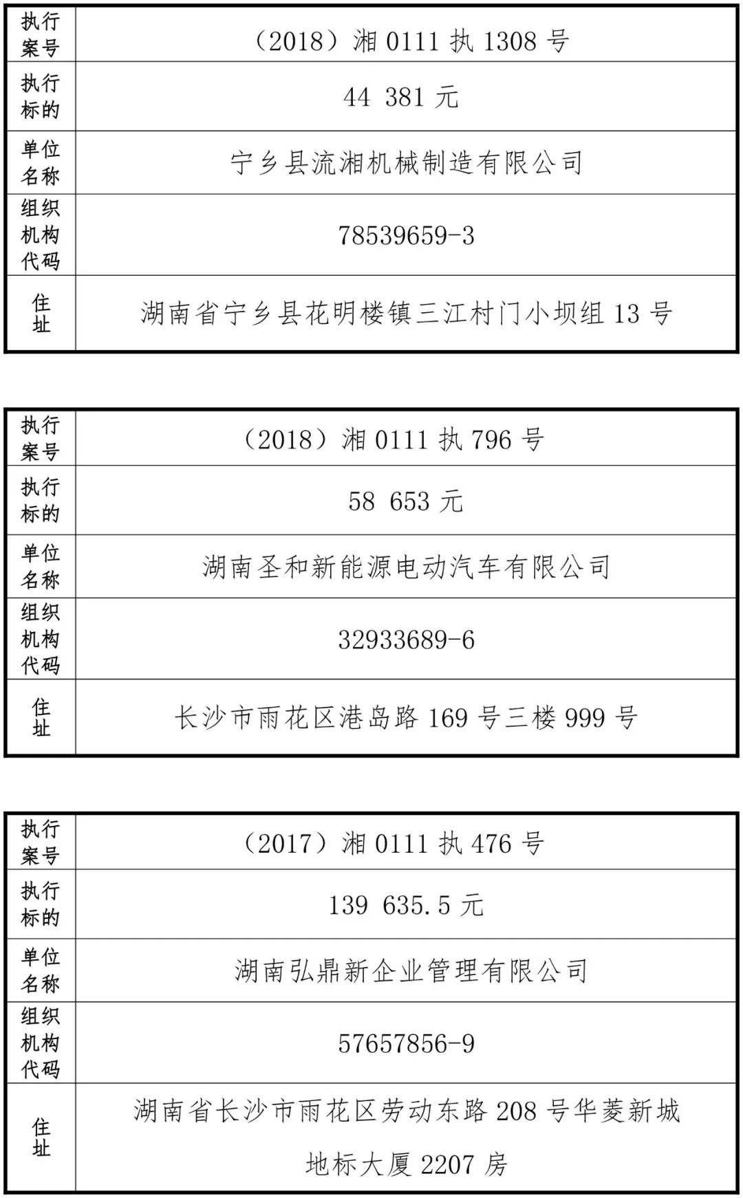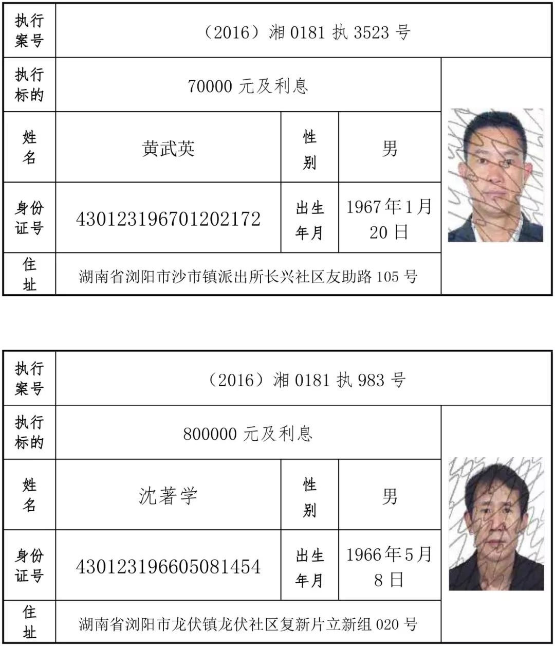 为有效促进被执行人自觉履行生效法律文书确定的义务,维护司法权威,提高司法公信力,让人民群众在每一个司法案件中感受到公平正义,营造向上、向善、诚信互助的社会风尚,促进社会综合治理,加快推进社会信用体系建设,我院根据《最高人民法院关于公布失信被执行人名单信息的若干规定》及《长沙市关于加快推进失信被执行人信用监督、威慑和惩戒联动机制建设的实施意见》,结合长沙市两级法院具体实际,2019年将适时集中统一发布全市两级法院失信被执行人名单信息并予以信用惩戒。现将2019年第一期失信被执行人名单信息予以公布。同时,根据《最高人民法院关于限制被执行人高消费的若干规定》第一条第二款的规定,向该批失信被执行人发布限制高消费令。