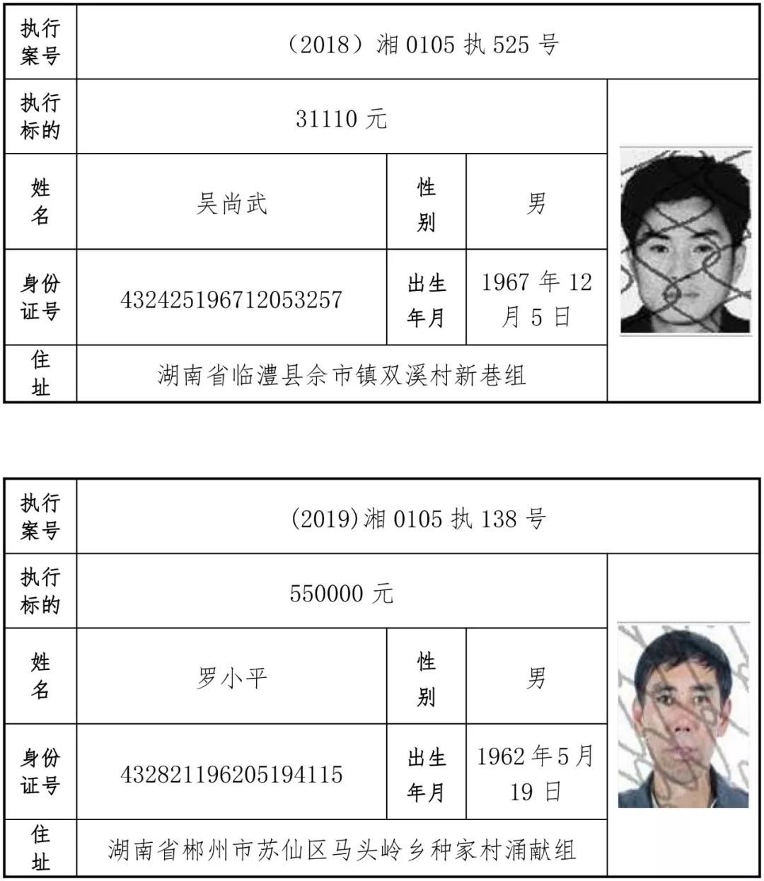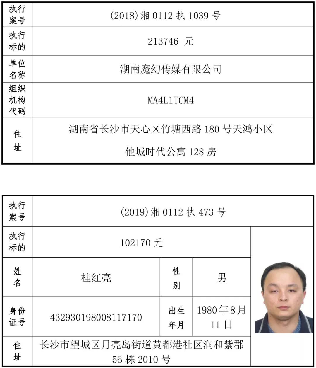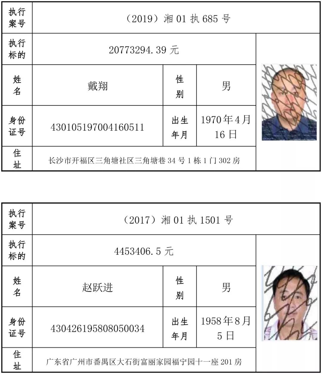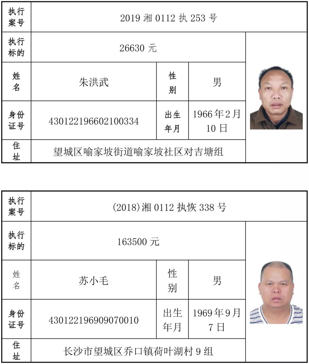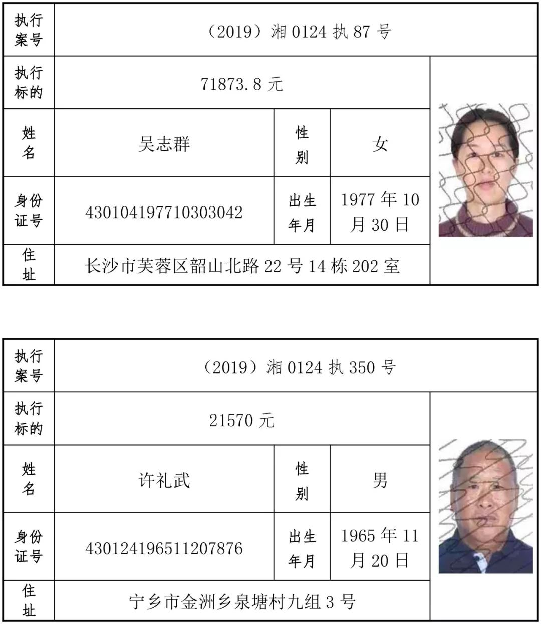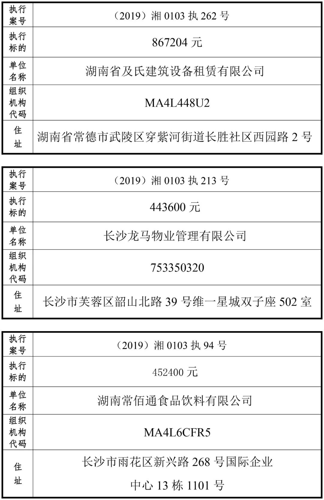 为有效促进被执行人自觉履行生效法律文书确定的义务,维护司法权威,提高司法公信力,让人民群众在每一个司法案件中感受到公平正义,营造向上、向善、诚信互助的社会风尚,促进社会综合治理,加快推进社会信用体系建设,我院根据《最高人民法院关于公布失信被执行人名单信息的若干规定》及《长沙市关于加快推进失信被执行人信用监督、威慑和惩戒联动机制建设的实施意见》,结合长沙市两级法院具体实际,2019年将适时集中统一发布全市两级法院失信被执行人名单信息并予以信用惩戒。现将2019年第一期失信被执行人名单信息予以公布。同时,根据《最高人民法院关于限制被执行人高消费的若干规定》第一条第二款的规定,向该批失信被执行人发布限制高消费令。