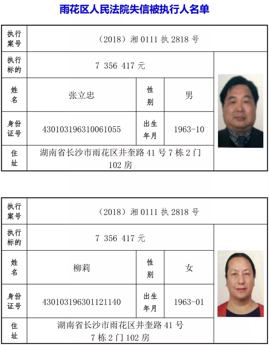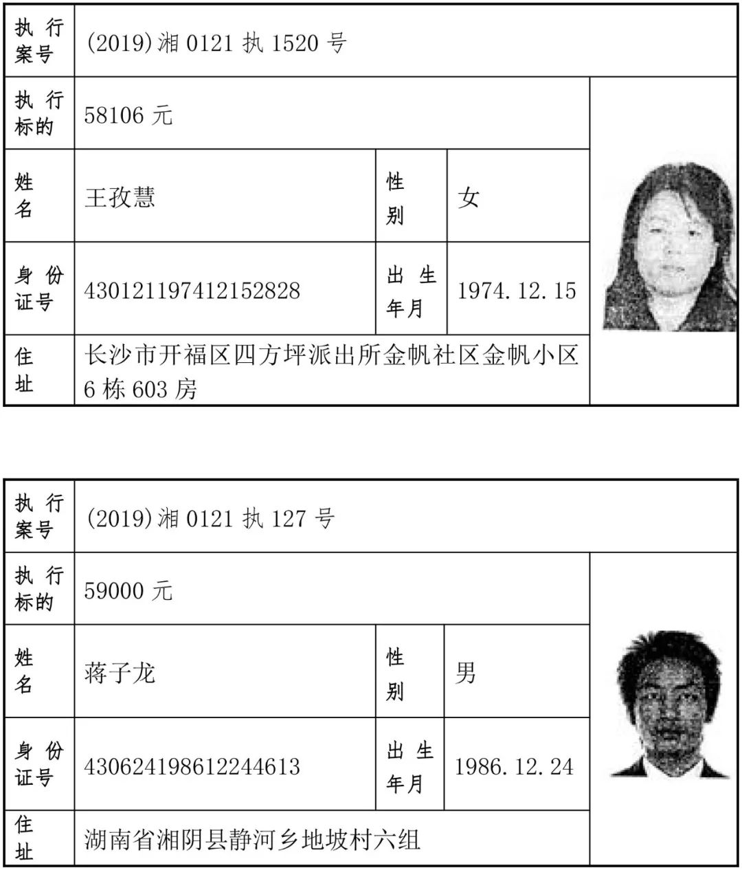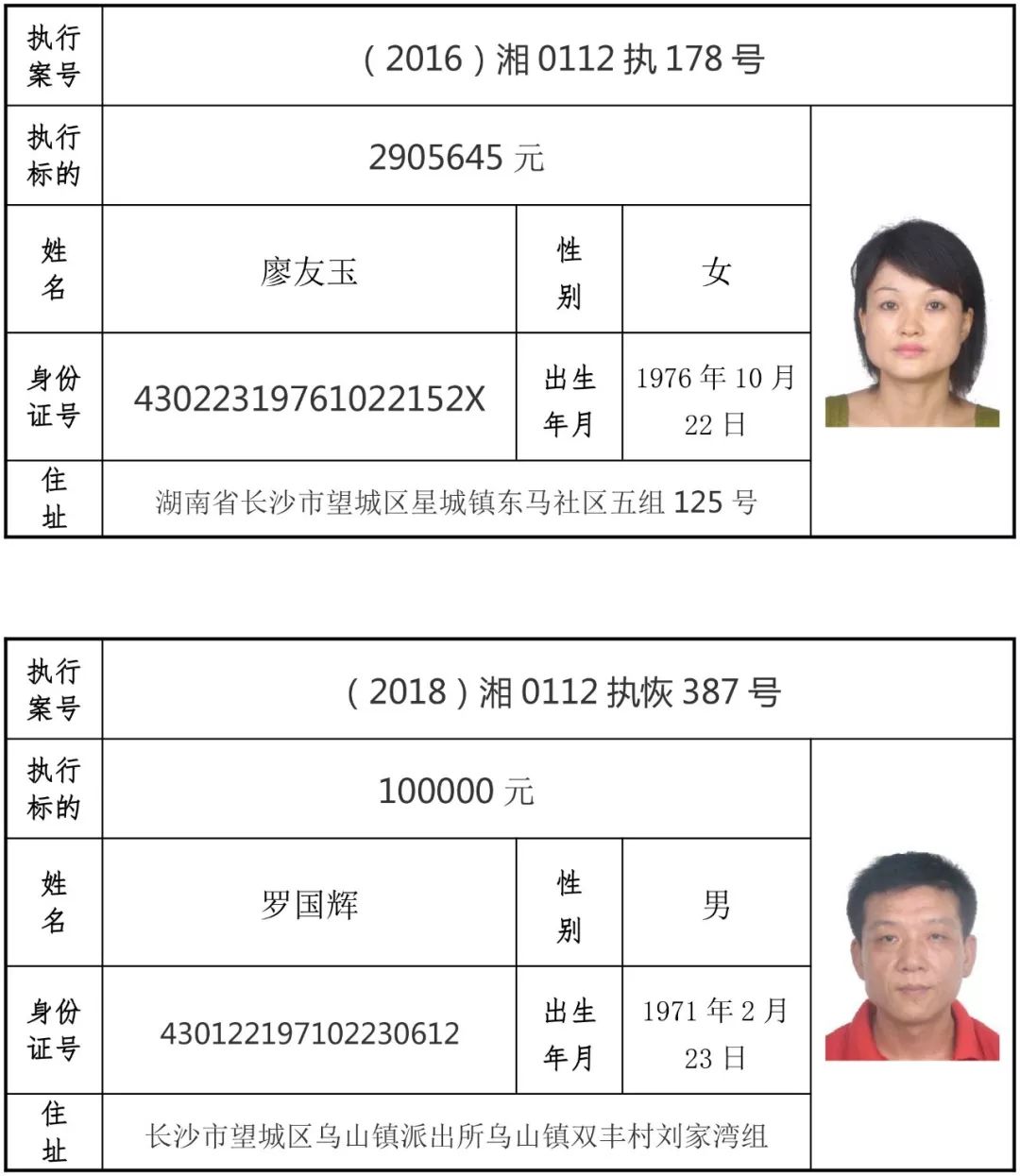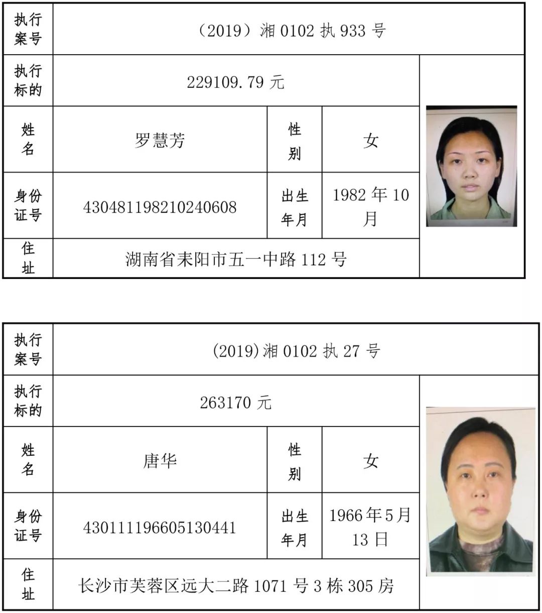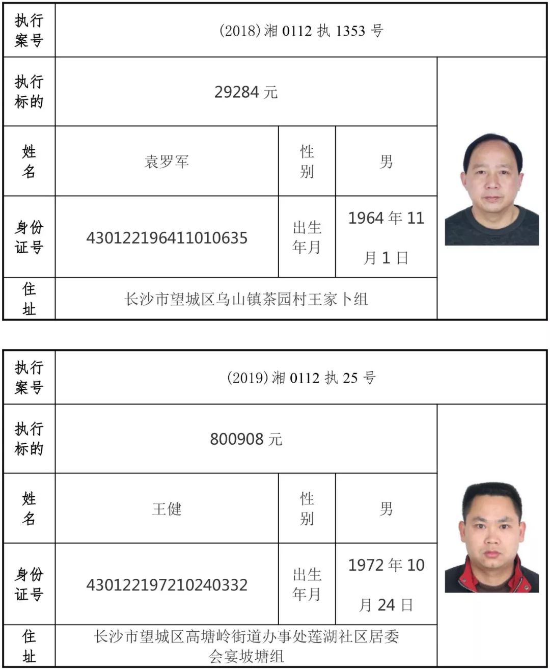 为有效促进被执行人自觉履行生效法律文书确定的义务,维护司法权威,提高司法公信力,让人民群众在每一个司法案件中感受到公平正义,营造向上、向善、诚信互助的社会风尚,促进社会综合治理,加快推进社会信用体系建设,我院根据《最高人民法院关于公布失信被执行人名单信息的若干规定》及《长沙市关于加快推进失信被执行人信用监督、威慑和惩戒联动机制建设的实施意见》,结合长沙市两级法院具体实际,2019年将适时集中统一发布全市两级法院失信被执行人名单信息并予以信用惩戒。现将2019年第一期失信被执行人名单信息予以公布。同时,根据《最高人民法院关于限制被执行人高消费的若干规定》第一条第二款的规定,向该批失信被执行人发布限制高消费令。
