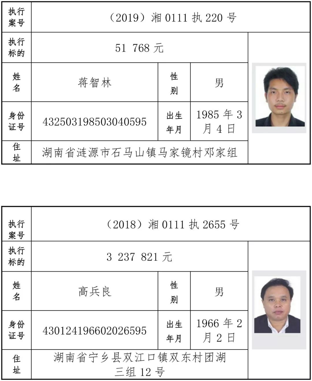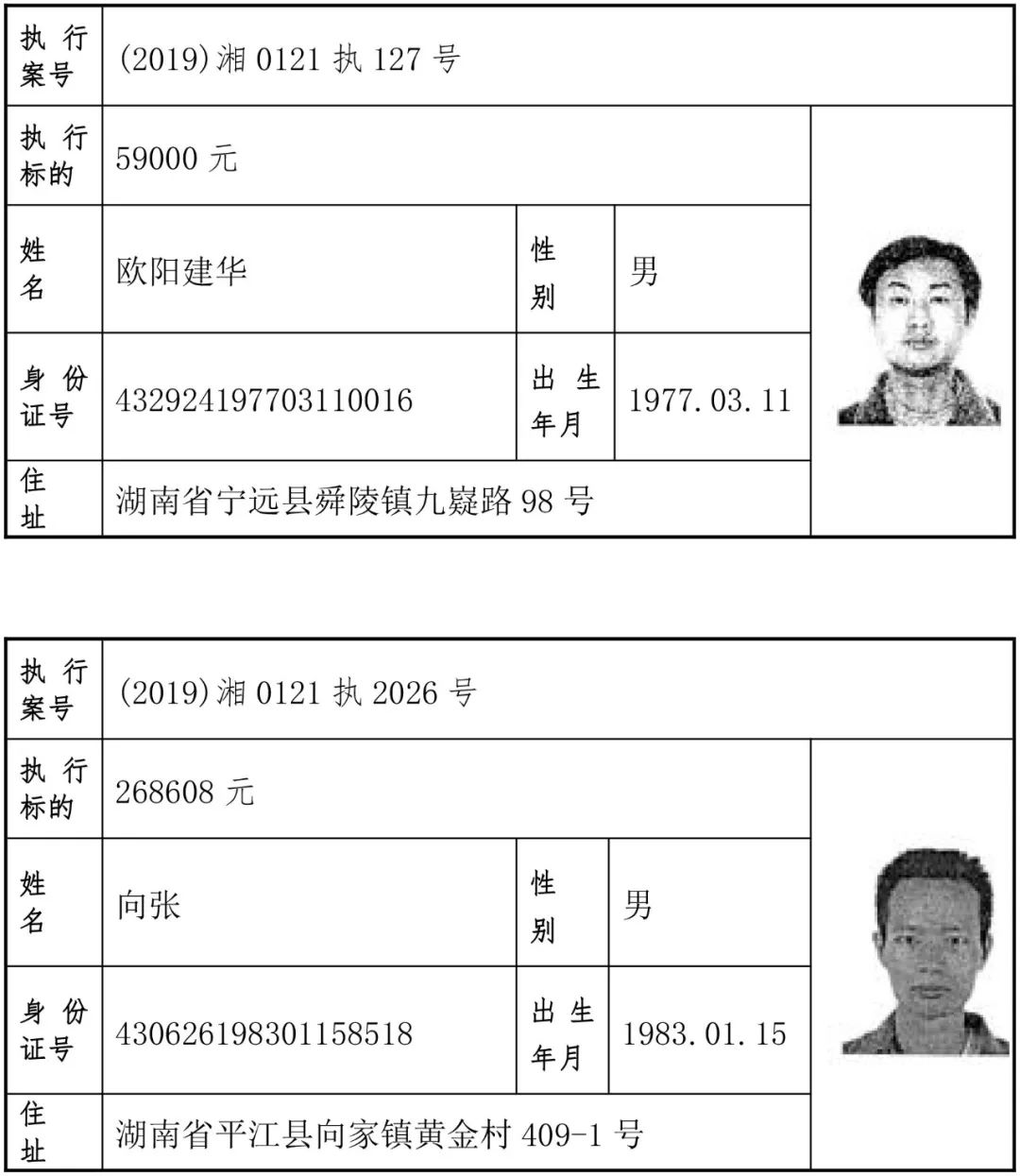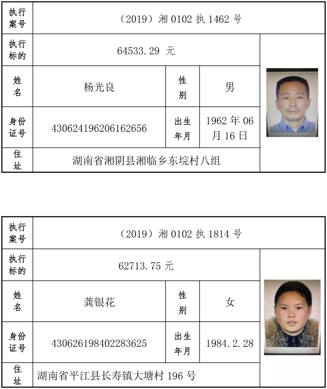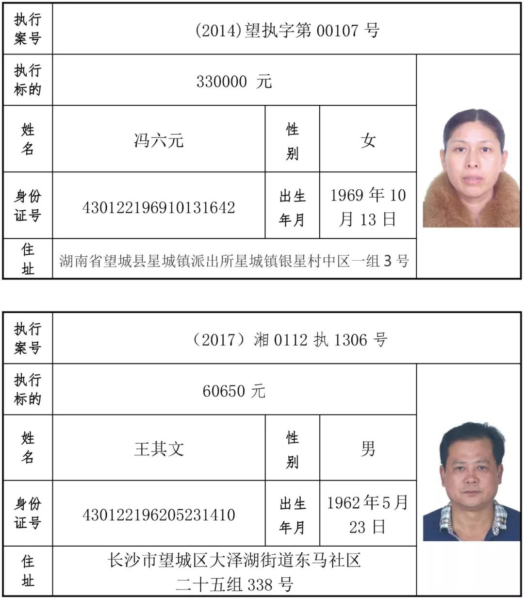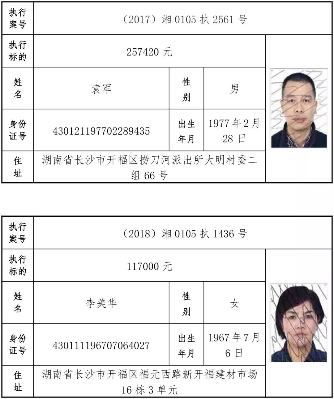 为有效促进被执行人自觉履行生效法律文书确定的义务,维护司法权威,提高司法公信力,让人民群众在每一个司法案件中感受到公平正义,营造向上、向善、诚信互助的社会风尚,促进社会综合治理,加快推进社会信用体系建设,我院根据《最高人民法院关于公布失信被执行人名单信息的若干规定》及《长沙市关于加快推进失信被执行人信用监督、威慑和惩戒联动机制建设的实施意见》,结合长沙市两级法院具体实际,2019年将适时集中统一发布全市两级法院失信被执行人名单信息并予以信用惩戒。现将2019年第一期失信被执行人名单信息予以公布。同时,根据《最高人民法院关于限制被执行人高消费的若干规定》第一条第二款的规定,向该批失信被执行人发布限制高消费令。