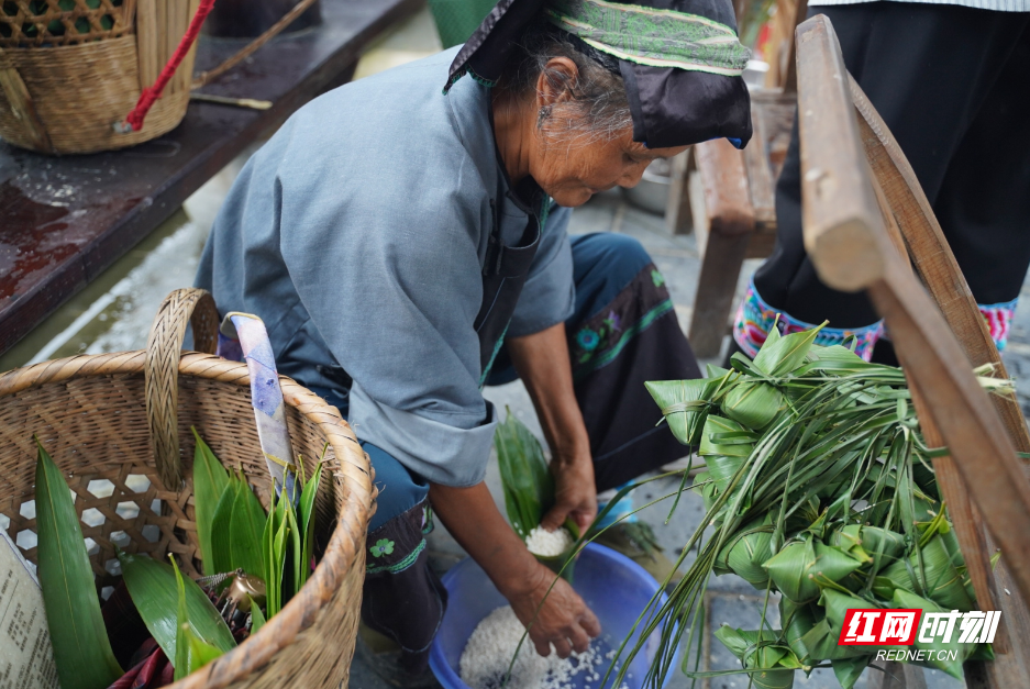 当天,补点村村部格外热闹,村民纷纷来参观新开业的“爱心积分超市”。村部旁的富民桥上,身着民族服装的苗家妇女与帮扶干部围坐一起,一边聊家常一边包粽子,共迎端午节。
