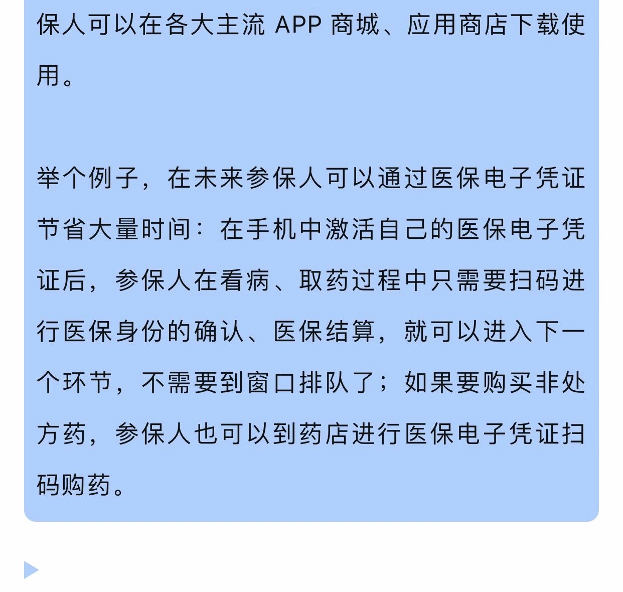 待医保电子凭证应用落地,即可在全省试点医院或药店进行医保卡身份识别、移动支付、信息查询和业务办理。也就是说以后直接手机扫码就可进行医保支付。