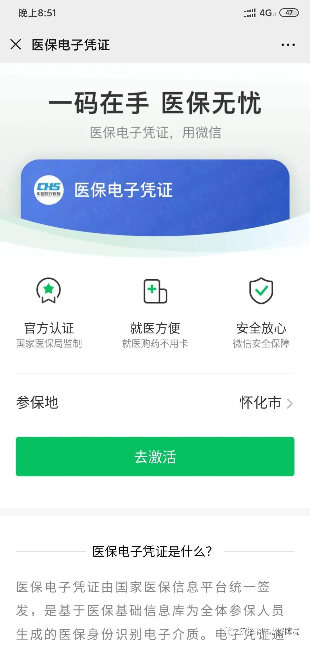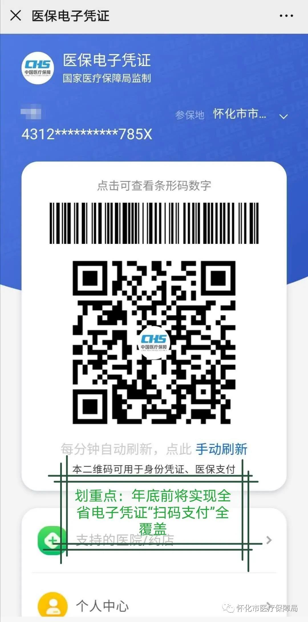 即日起,我市基本医疗保险参保人可通过“湘医保”(湖南省医疗保障局官方微信)公众号,或关注怀化市医疗保障局官方微信公众号,在“微服务”栏目中的“湘医保”,激活自己的医保电子凭证。