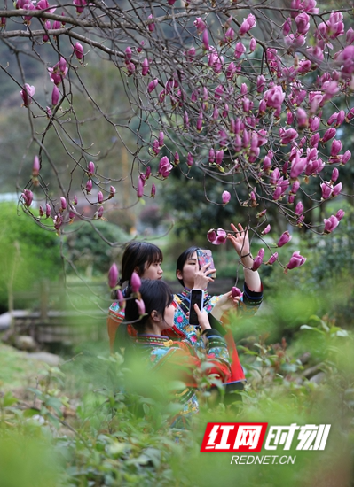 2月26日,武陵源区黄龙洞景区生态广场,赏花与游玩。