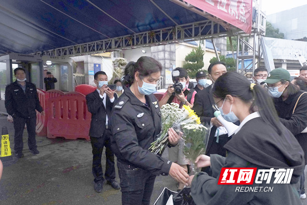 部分市民悼念袁隆平院士的鲜花,由工作人员带入了殡仪馆。