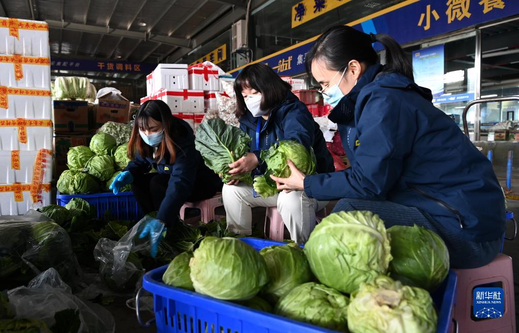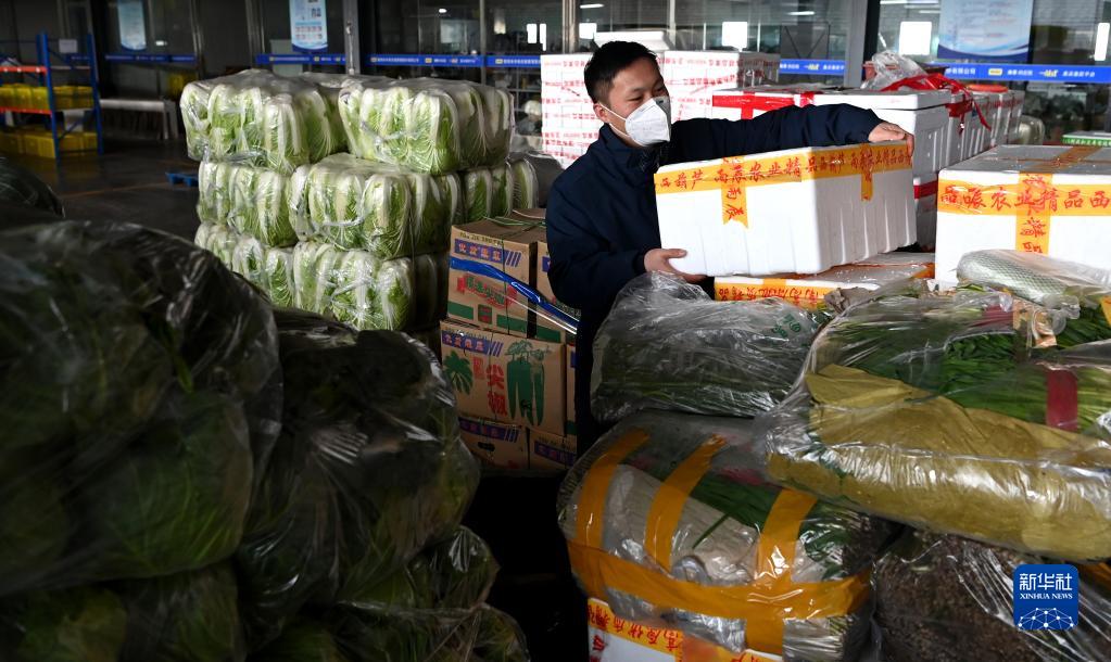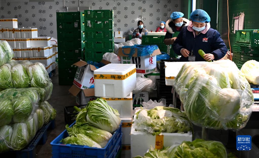 陕西米禾供应链管理股份有限公司的工作人员在分装即将配送的蔬菜(12月19日摄)。新华社记者 刘潇摄