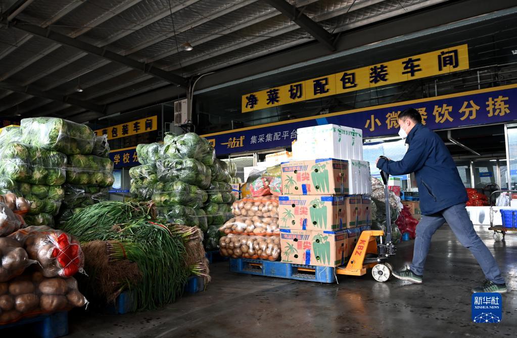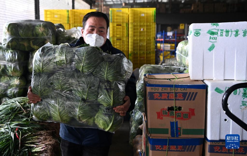 陕西米禾供应链管理股份有限公司的工作人员在搬运蔬菜(12月19日摄)。新华社记者 刘潇摄