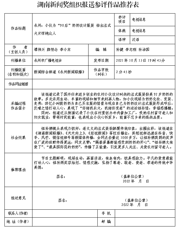 永州:小伙为“90后”奶奶设计服装 拍出法式大片惊艳众人