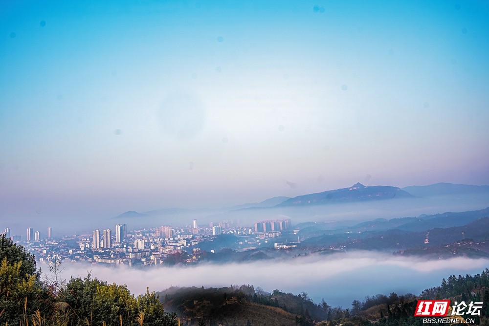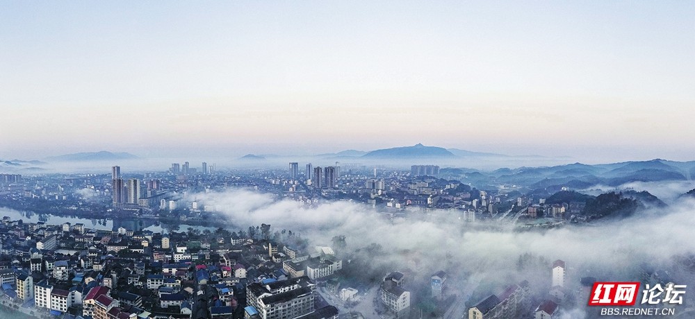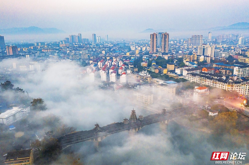 薄雾缭绕间,早起的行人缓步穿梭,车辆驶过留下淡淡车辙,烟火气与仙境感在此刻交融。这如梦似幻的晨雾景致,尽显靖州生态之美,更将山城的冬日韵味与苗侗风情,揉进了每一缕轻盈的雾霭里。(图文/许志国 田其珍)