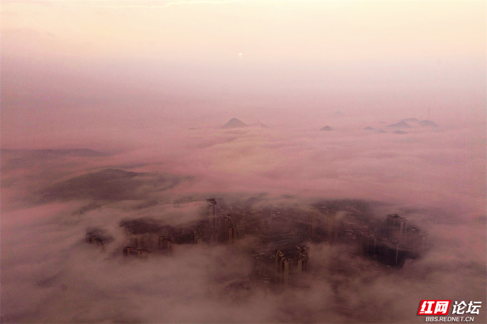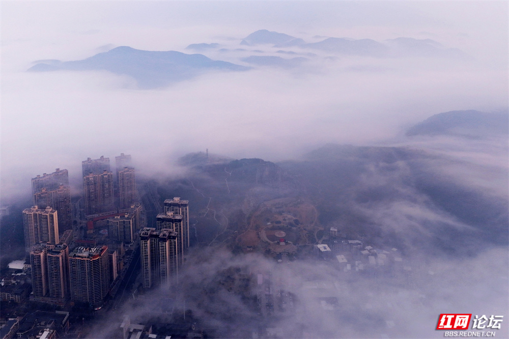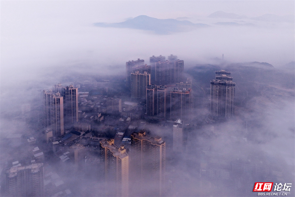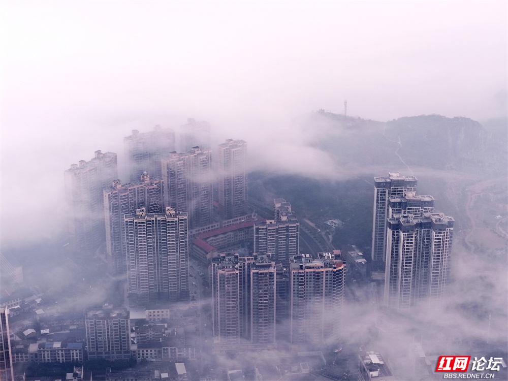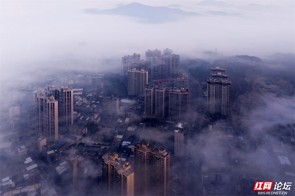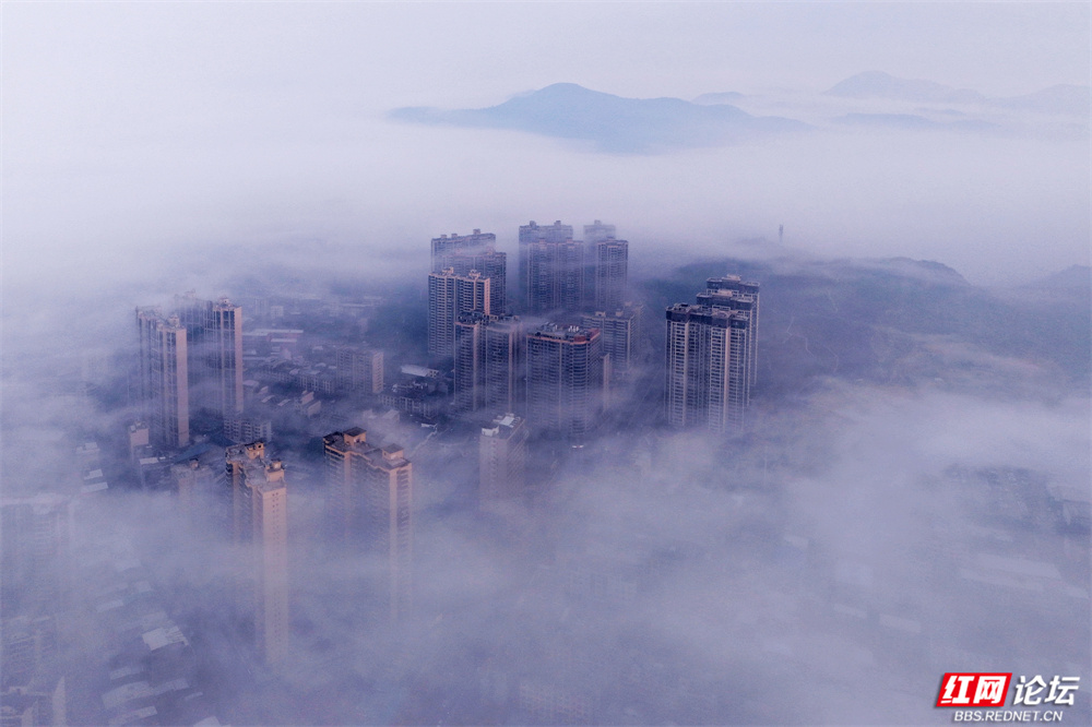 这不是消散,是另一种呈现——城市在雾中呼吸,建筑与自然悄然对话。现代的姿态融进水墨的意境里,每一帧都像从宋画中苏醒的梦。原来,我们所居的城,也可以如此飘渺、静谧,不似在人间。(图文/杨勇)