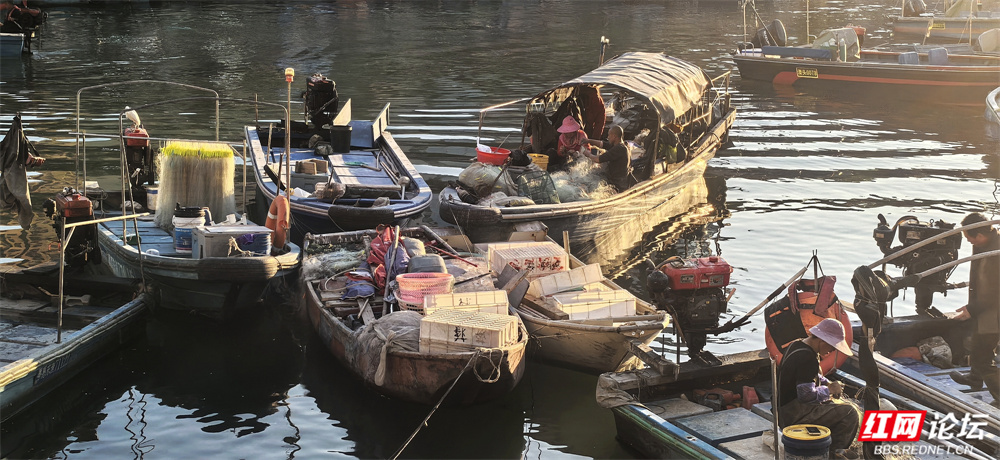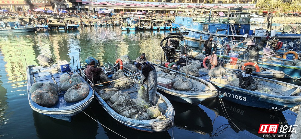 每日清晨或傍晚,渔船摇着浪痕归港:舱里的鲜货刚被抬上码头,彩塑料筐就盛起满当当的海味 —— 花蛤裹着湿沙、鱼鲜沾着水珠,摊主弯腰分拣的身影,让咸腥气里都浸着热乎的生活劲儿。