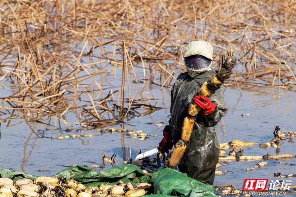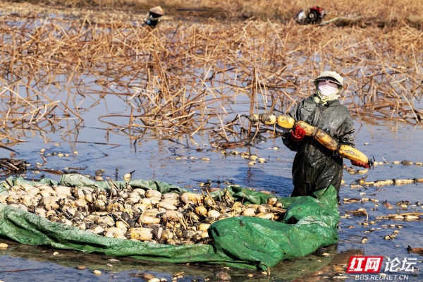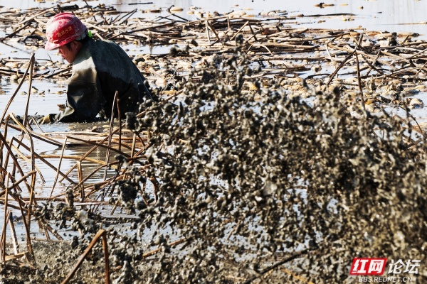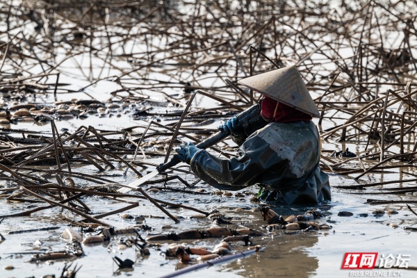 曾几何时,这里最常见的是人手一锹、身披蓑衣,躬身没入齐腰深的泥水中,全凭双手从淤泥里盘出整藕的景象。如今,机械与高压水枪代替了铁锹与肩挑背扛,劳动效率显著提高。