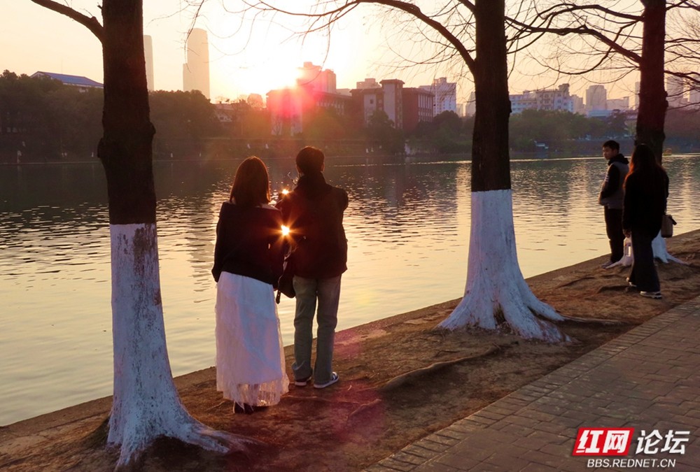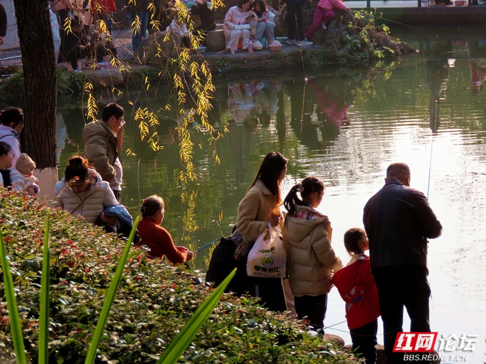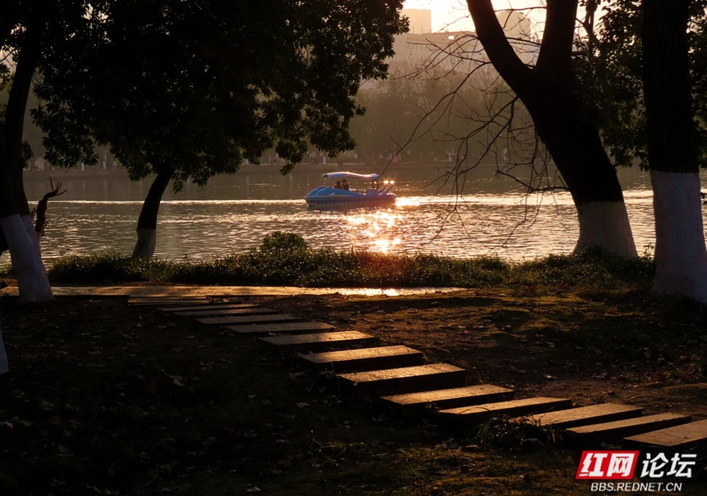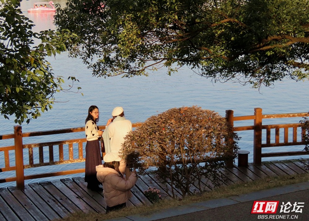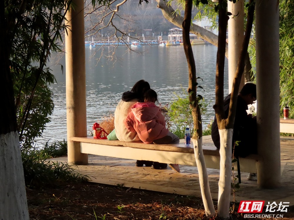 有人成群坐在长椅上,背对着城市建筑,安静地看那一抹残阳落入水中;也有人倚在木栈道旁低语,任由阳光洒满肩头。小巧的踏板船在湖心悠然荡漾,划出一道道闪亮的涟漪,那是冬日里最惬意的节奏。柳树下的垂钓者、推着婴儿车散步的家人、在广场上追逐光影的孩子,以及路边飘香的小吃摊位,共同构成了一幅动人的长沙生活画卷。
