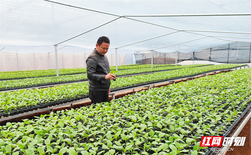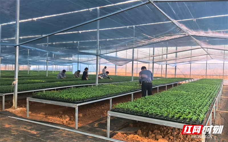 双峰村90后村民廖海平创办了湖南省岭南种业公司,搭起80亩蔬菜育苗大棚,扎进白晃晃一片天地,专注于嫁接蔬菜瓜果苗,让它们打小就经风过浪、身强体壮,“不输在起跑线上”。