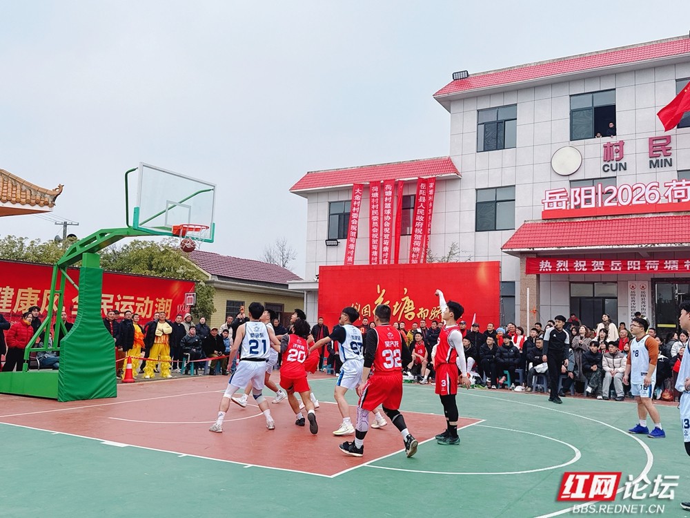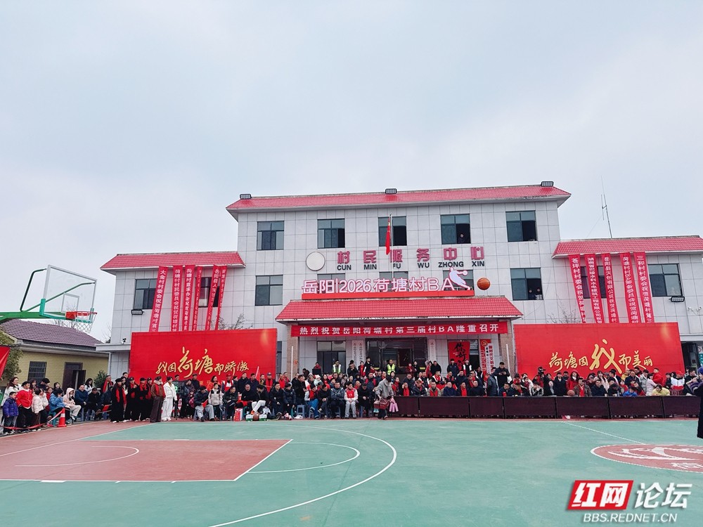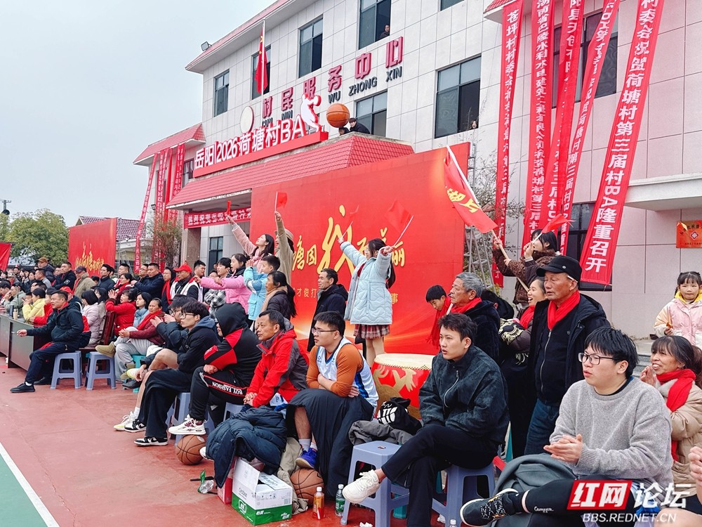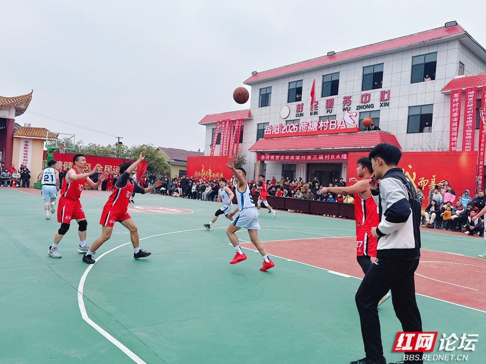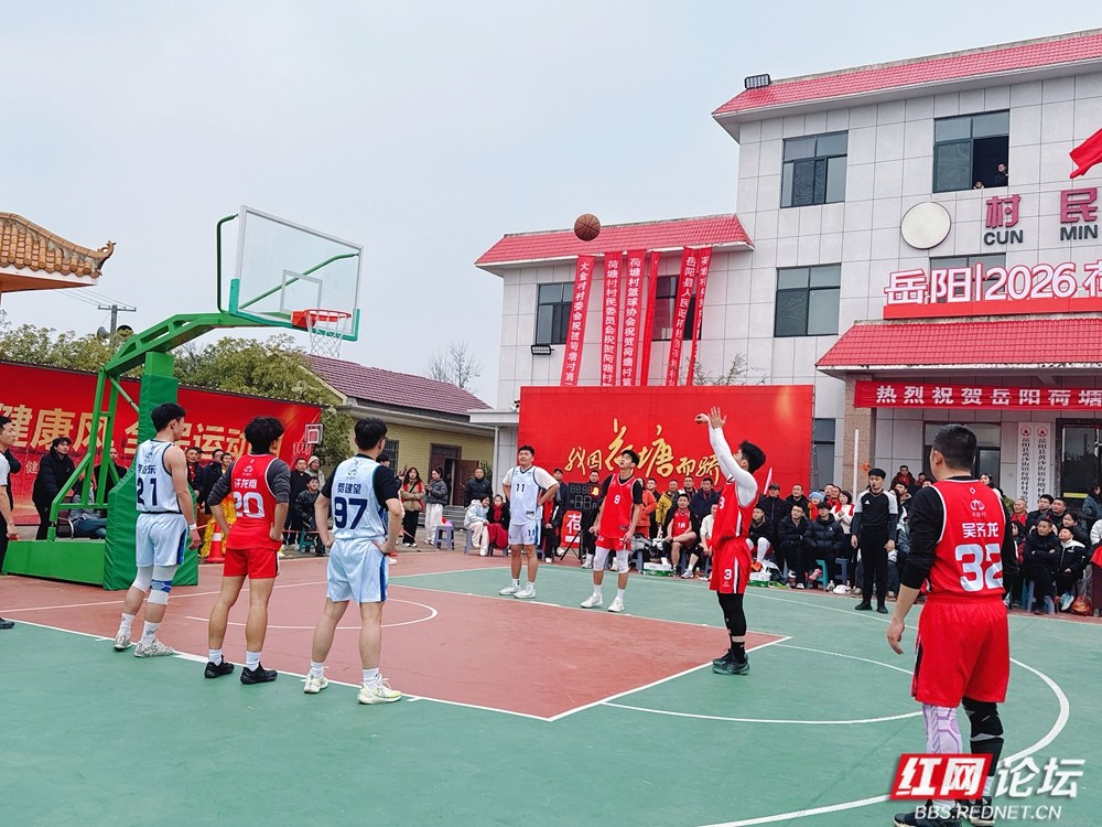 2月17日,当晨光漫过岳阳县黄沙街镇荷塘村的田埂,村民服务中心的球场已是一片火热。红色的横幅、喜庆的春联与跃动的球影交织。随着一声清脆的哨响,荷塘村第三届“村BA”如约而至,用一场家门口的体育盛宴,划破了新年的静谧,串起浓浓乡情。