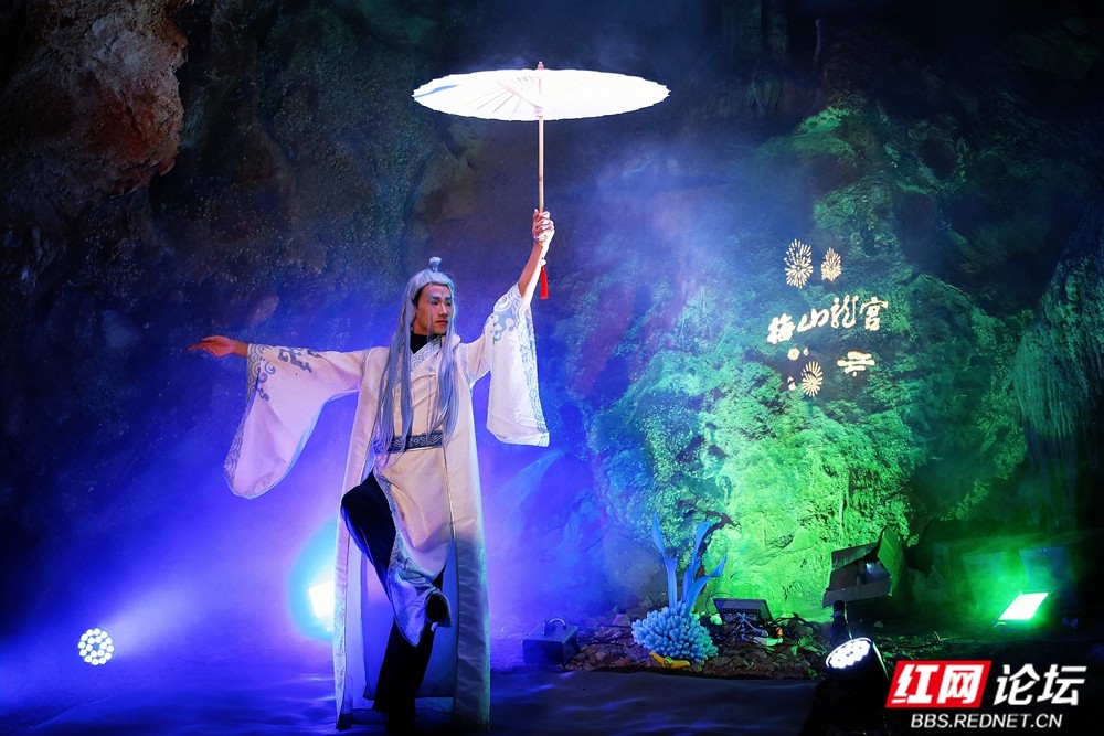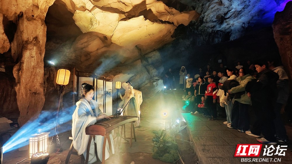 当自然造化的瑰丽溶洞遇上非遗民俗的厚重底蕴,一场视觉与心灵的奇遇就此展开。步入龙宫,是流光溢彩的石林奇观;回首瞬间,是仙气氤氲的乐舞翩跹。在这里,游客们在“赏、玩、游、逛”中,与古老的梅山文化撞个满怀。