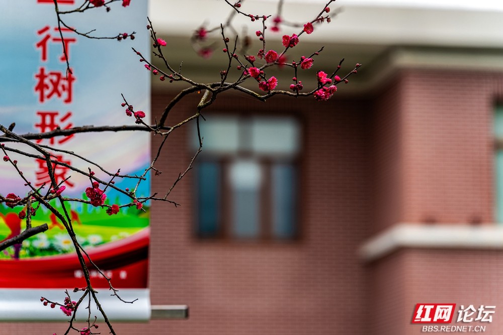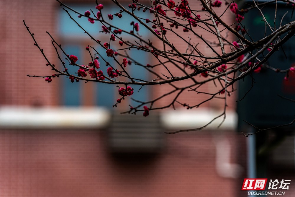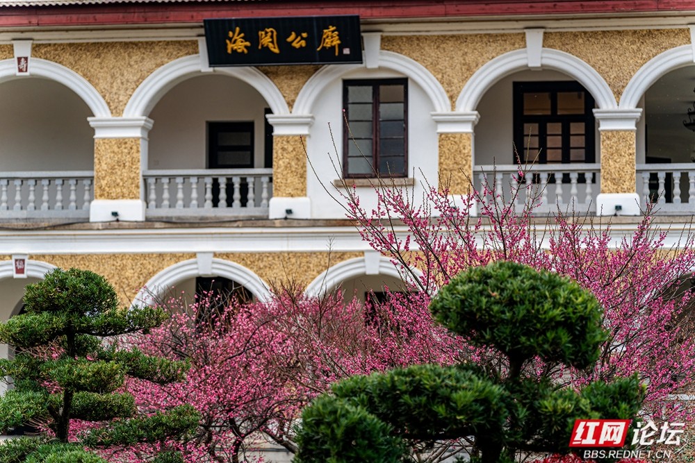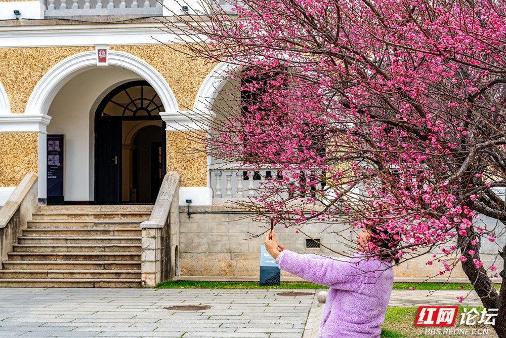 初春时节,长沙橘子洲海关公廨旧址迎来了一抹最动人的亮色。古朴典雅的近代建筑与傲雪凌霜的红梅交相辉映,构成了一幅跨越时空的绝美画卷。