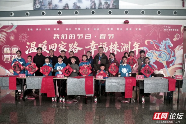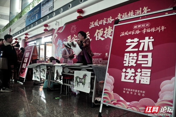 春运大幕拉开,株洲的车站与街头早已暖意融融。2月11日,“株事有礼·温暖回家路、幸福株洲年”的新春盛会在株洲火车站、株洲西站、长株潭城际铁路大丰站及中心汽车站同步展开。活动里,墨香先至,志愿者与书法爱好者挥毫泼墨,将大红春联与“福”字递到旅客手中;“艺术骏马送福”展台前,非遗与创意碰撞,为归人添彩。
