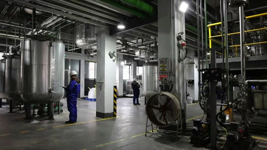 ▲湖南引航生物科技有限公司D-乙酯生产发酵车间。(万欣/摄)